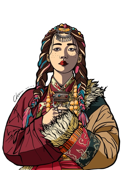 藏族女孩插画