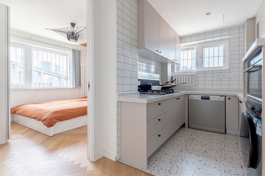 43㎡纯白极简小家,独居生活打造0墙开阔空间