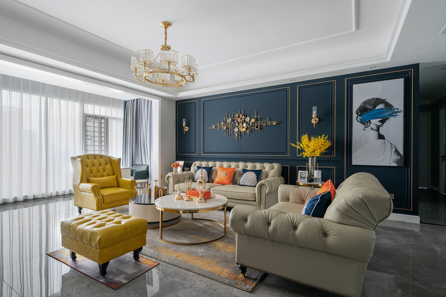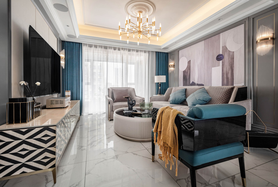 融创滨江壹号装修完工实景图,时尚美式轻奢风设计案例