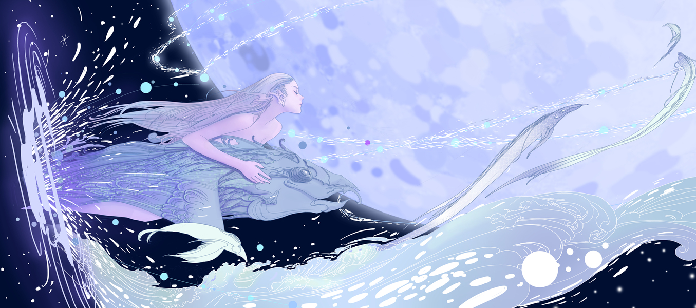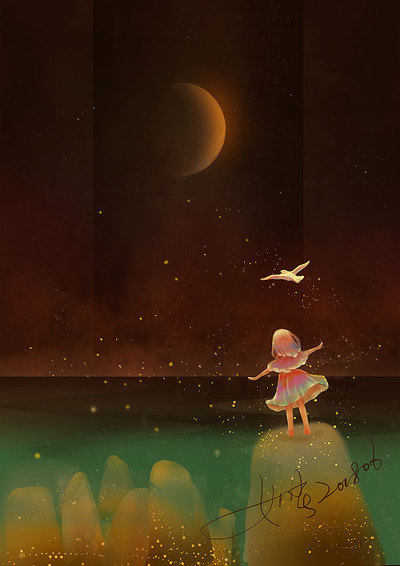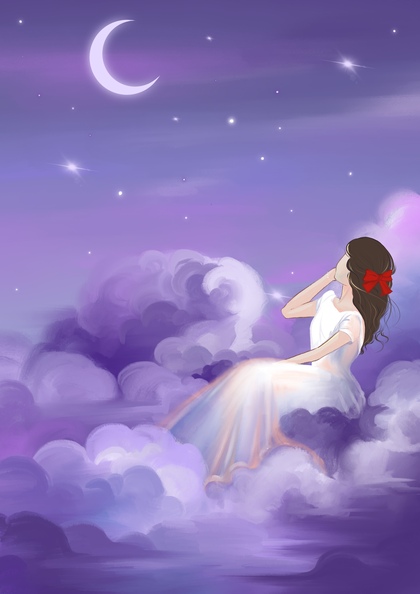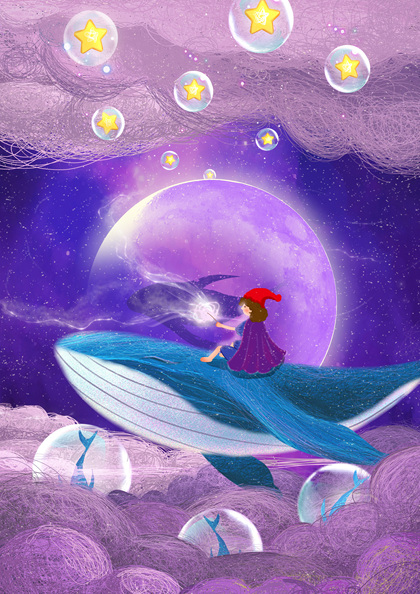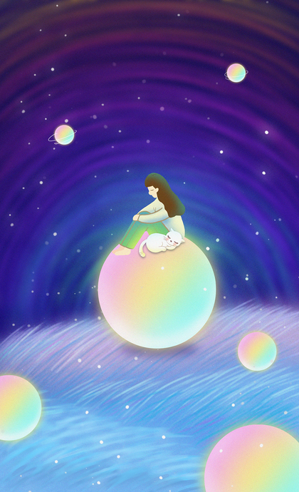 治愈系抑郁症唯美星球天空女孩与动物插画
