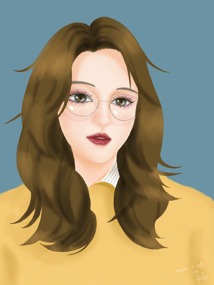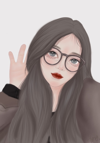 戴眼镜的少女 人物插画