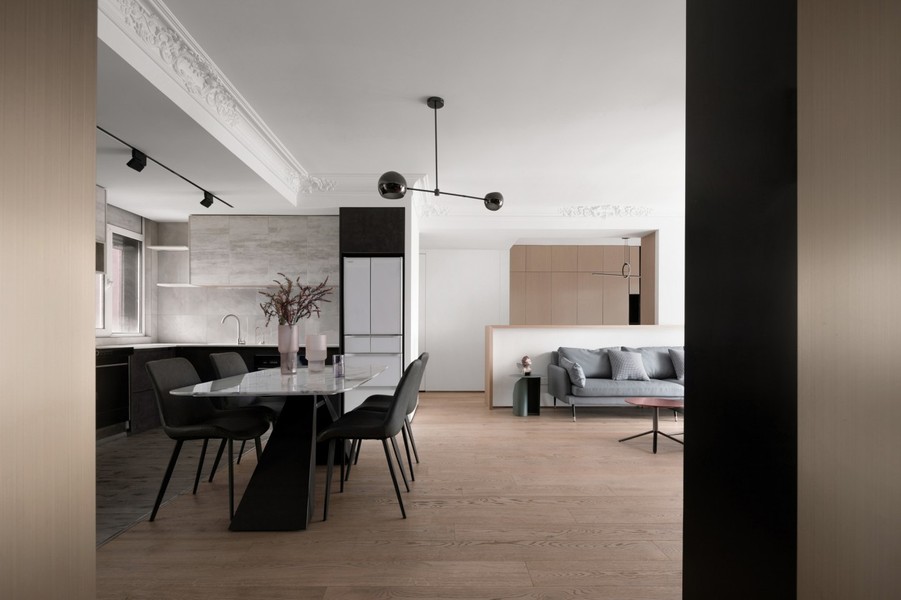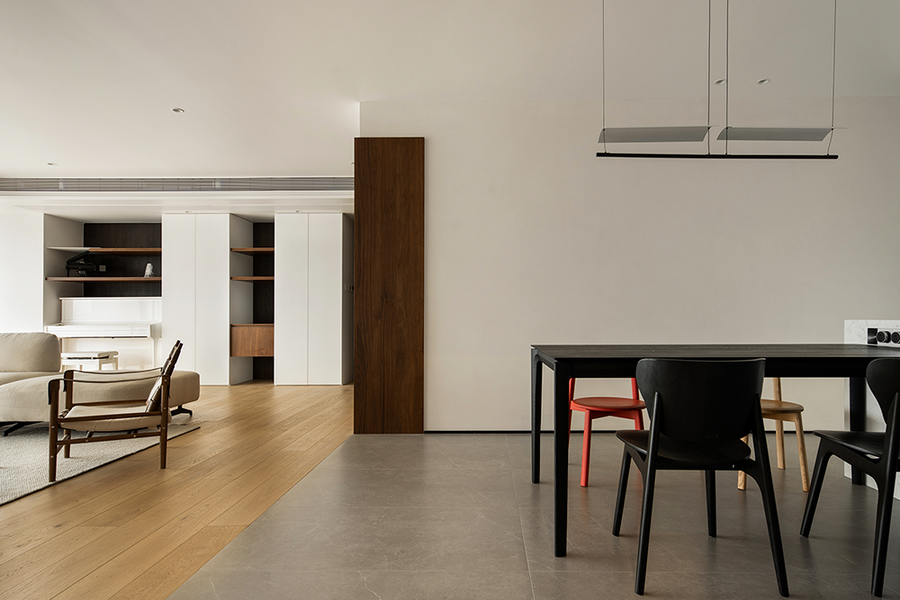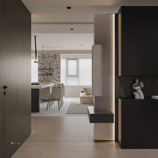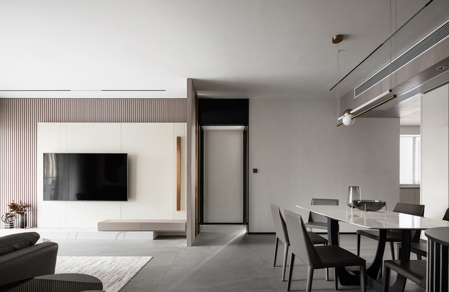 浅灰与原木设计,营造103m²三室一厅静谧感十足居所