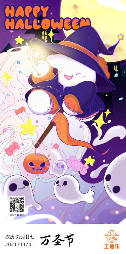 #商业插画#潮流插画 欢乐万圣节 幽灵巫婆南瓜灯