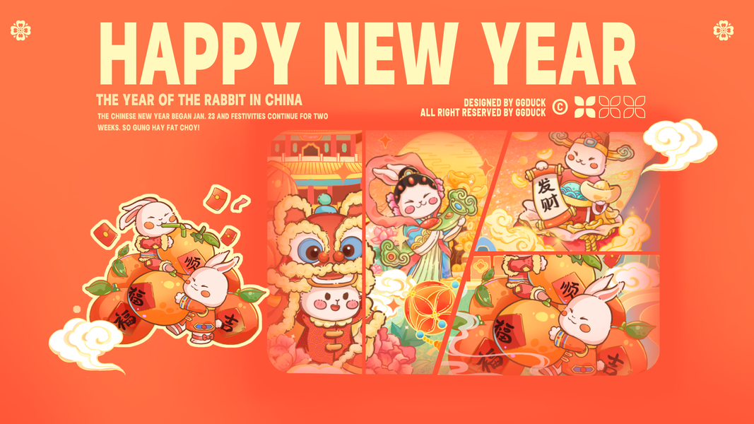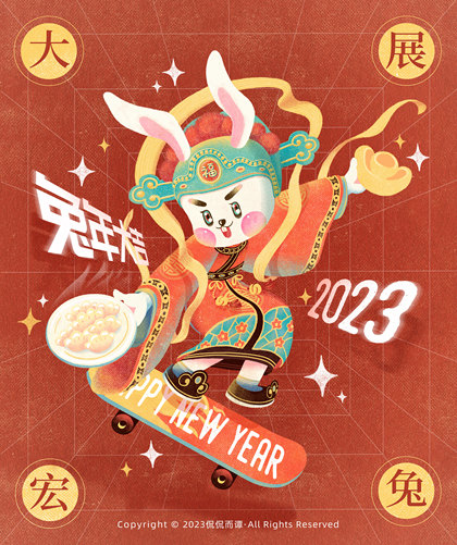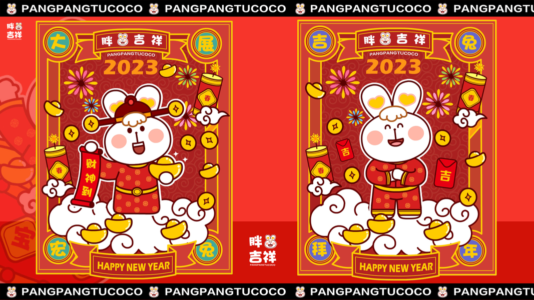 2023遇兔呈祥兔年插画设计 春联红包等文创产品设计