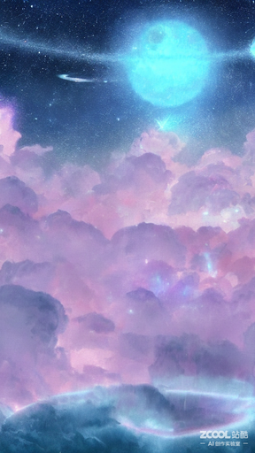 #AI创作实验室#粉蓝色的云层中,有一栋白色的宫殿伫立