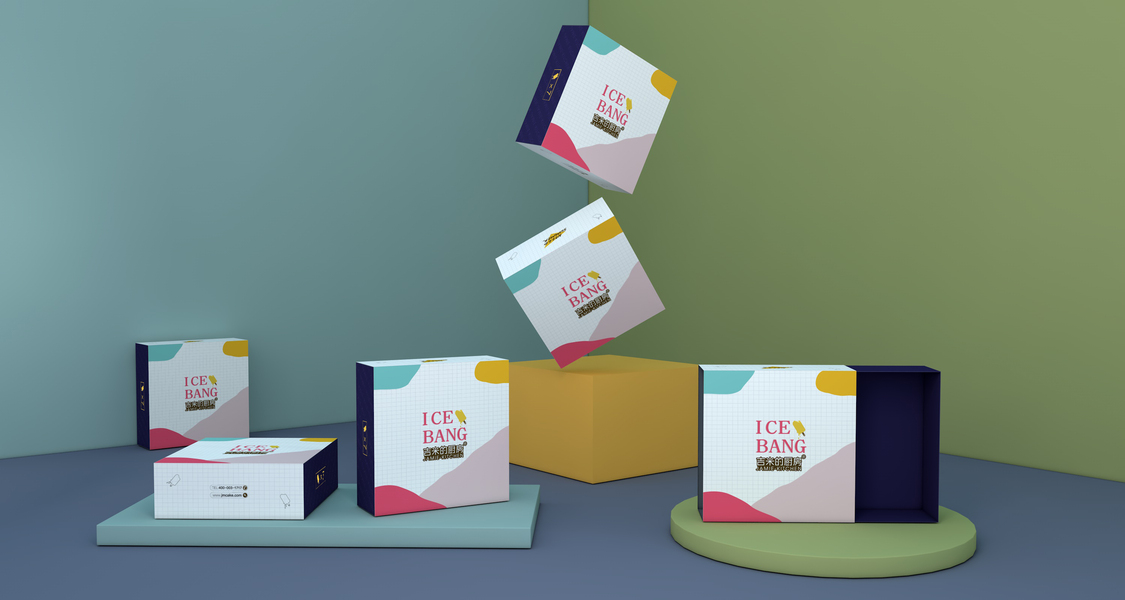 冰激凌包装盒、棒冰抽屉盒、ins风、清新