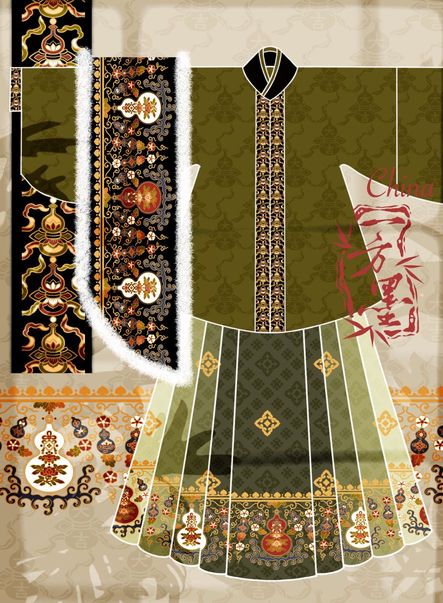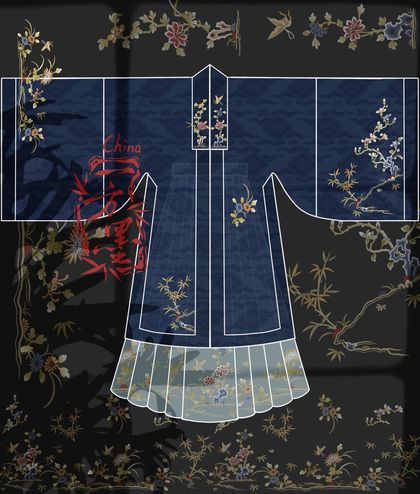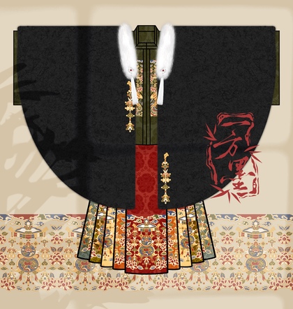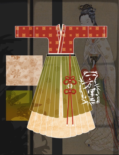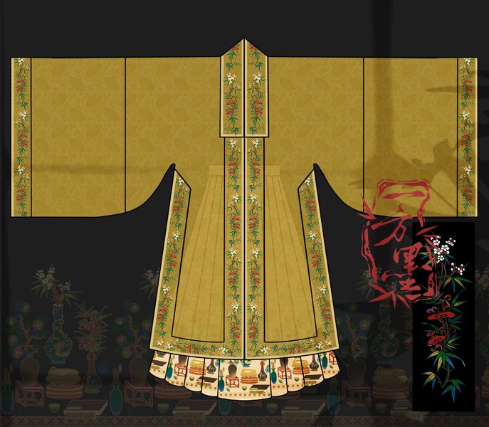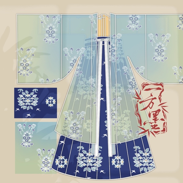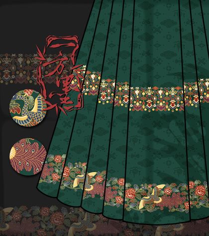 复原二创传统纹样•孔雀牡丹马面裙设计