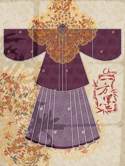 传统纹样•鸾凤云纹明制短袄+桃实纹马面裙