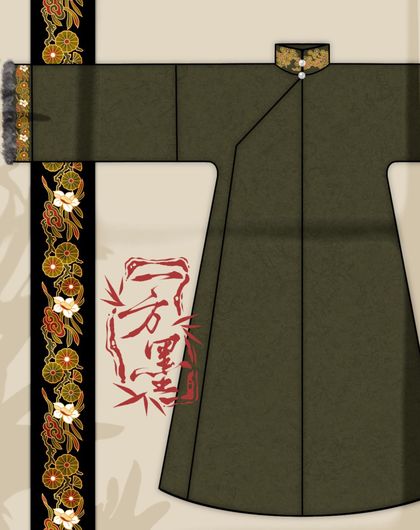 鸾凤云纹立领对襟短袄+桃实纹贴边马面
