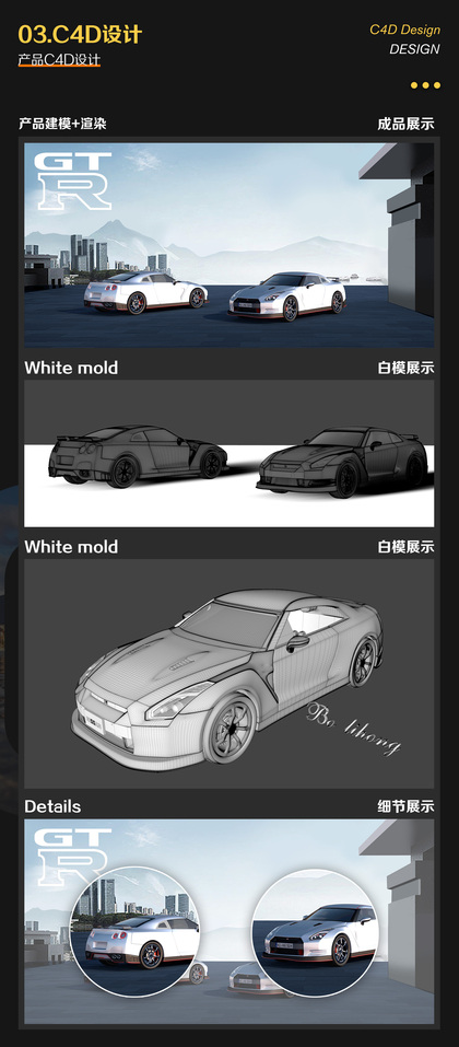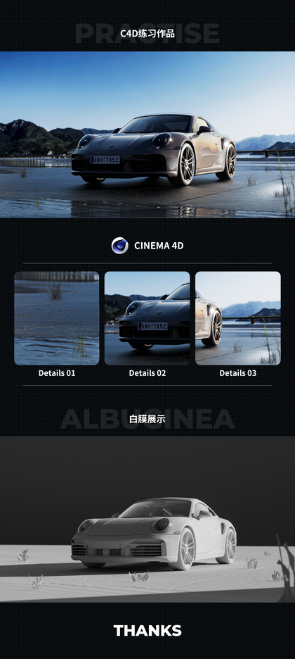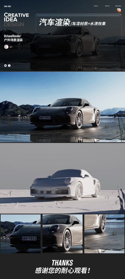 户外场景渲染练习-汽车渲染练习:车漆材质+水渍效果;