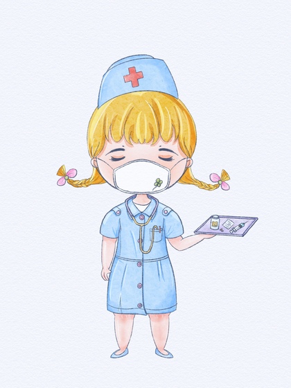 「水彩插画」护士服女孩