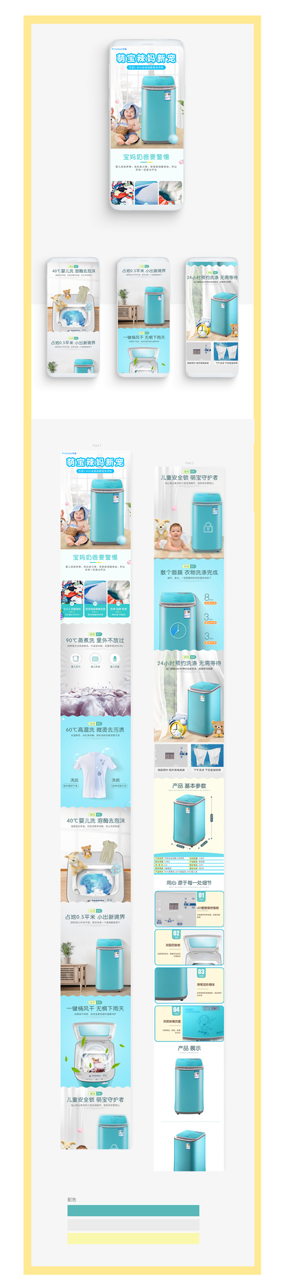 儿童洗衣机详情母婴卡通场景合成电商爆款描述页