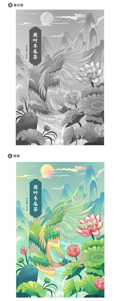 花茶插画包装-荷叶冬瓜茶