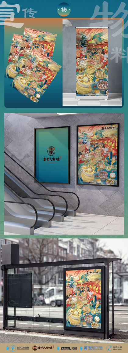 【蚩尤九黎城】长桌宴平面海报及其衍生品—吃货桃花源
