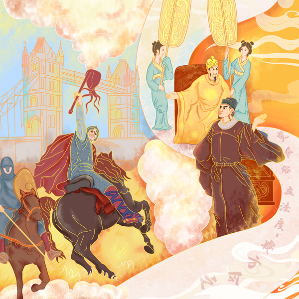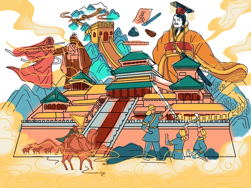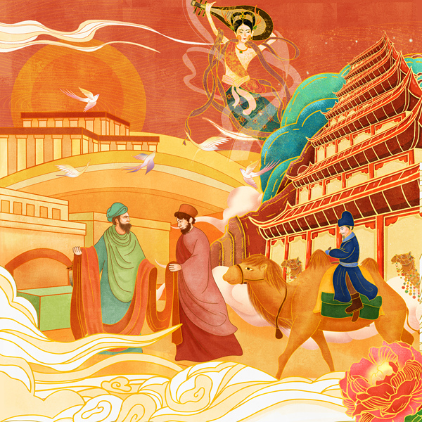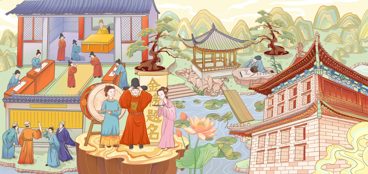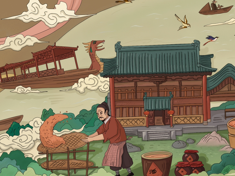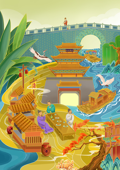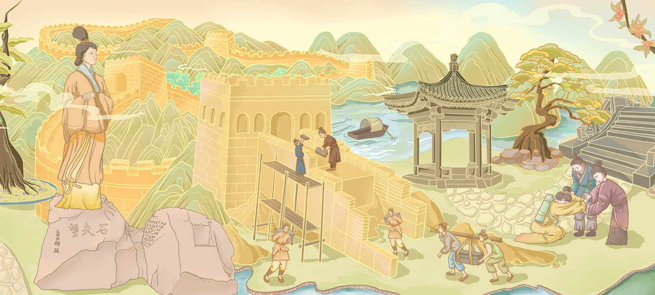 秦腔戏曲非遗长卷国潮插画——《秦腔街》