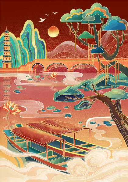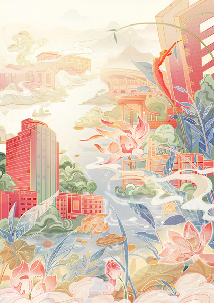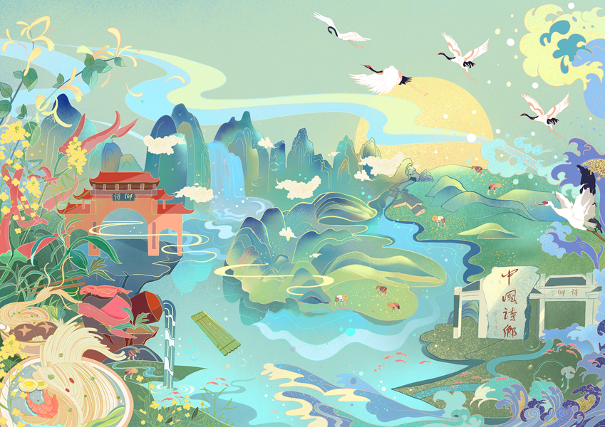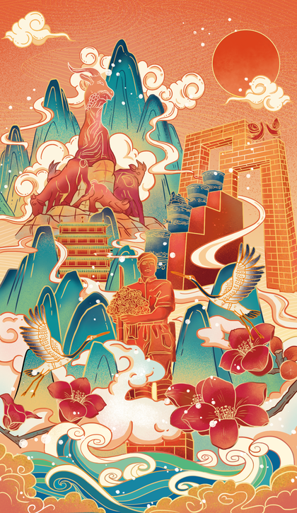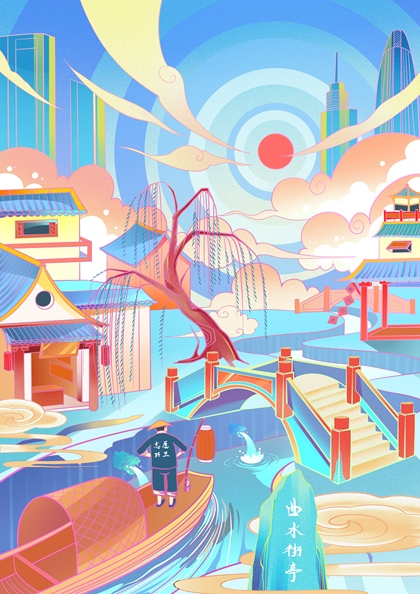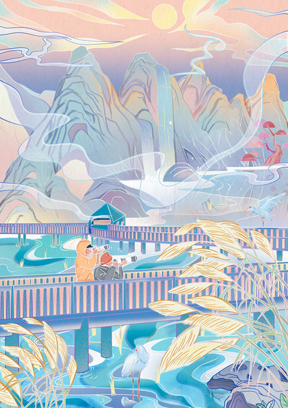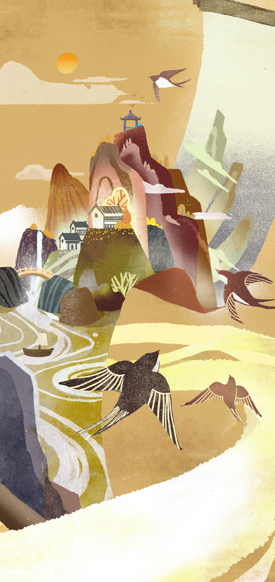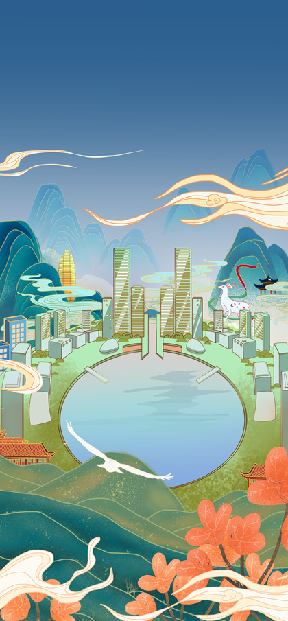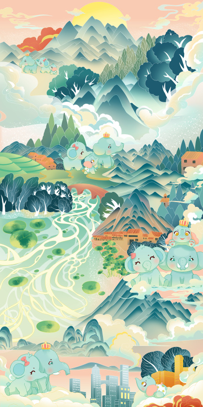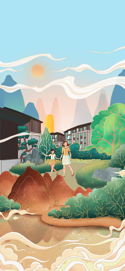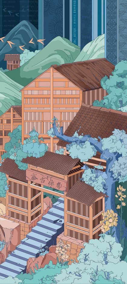 绥阳风景商业插画 不知道是哪个配色好点 你们来选吧~