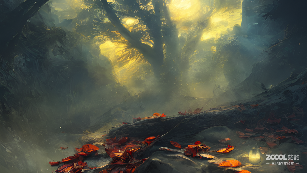 #AI创作实验室#乌鸦,落叶,落日,未来主义,插画,柔