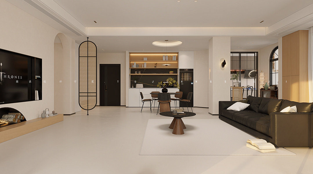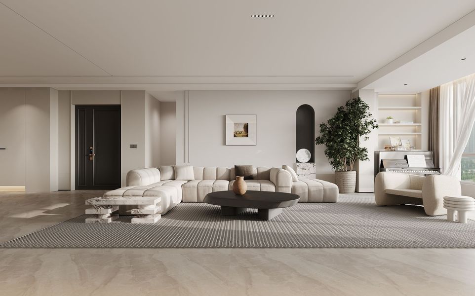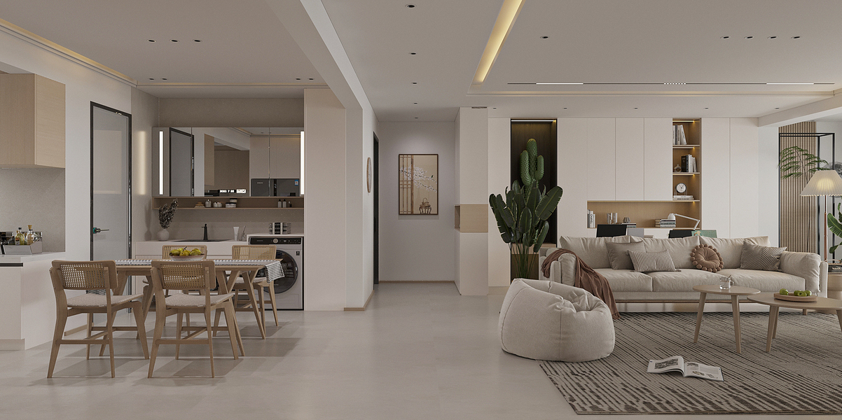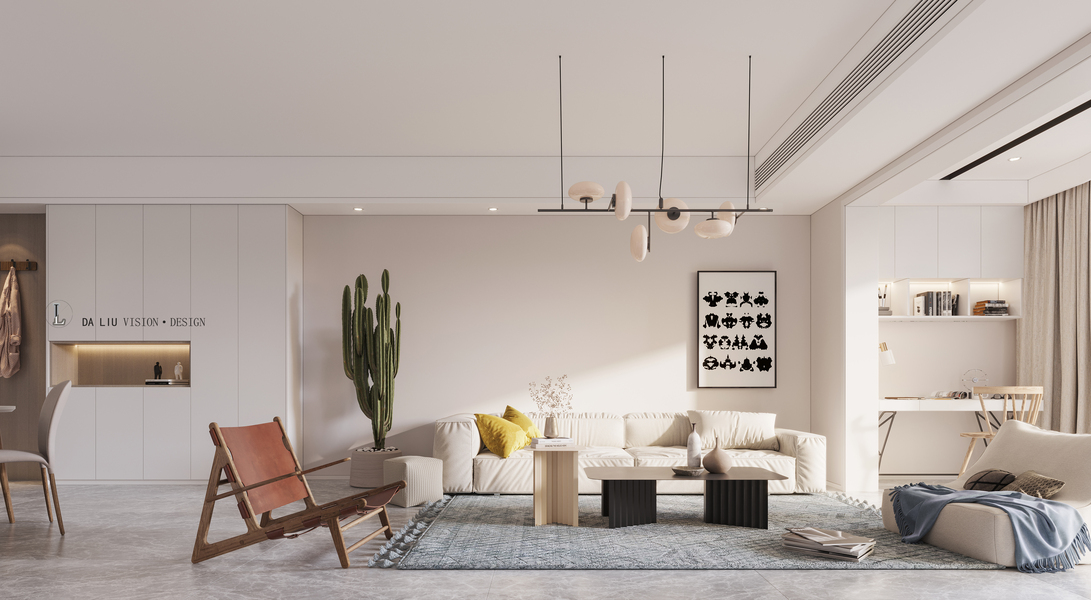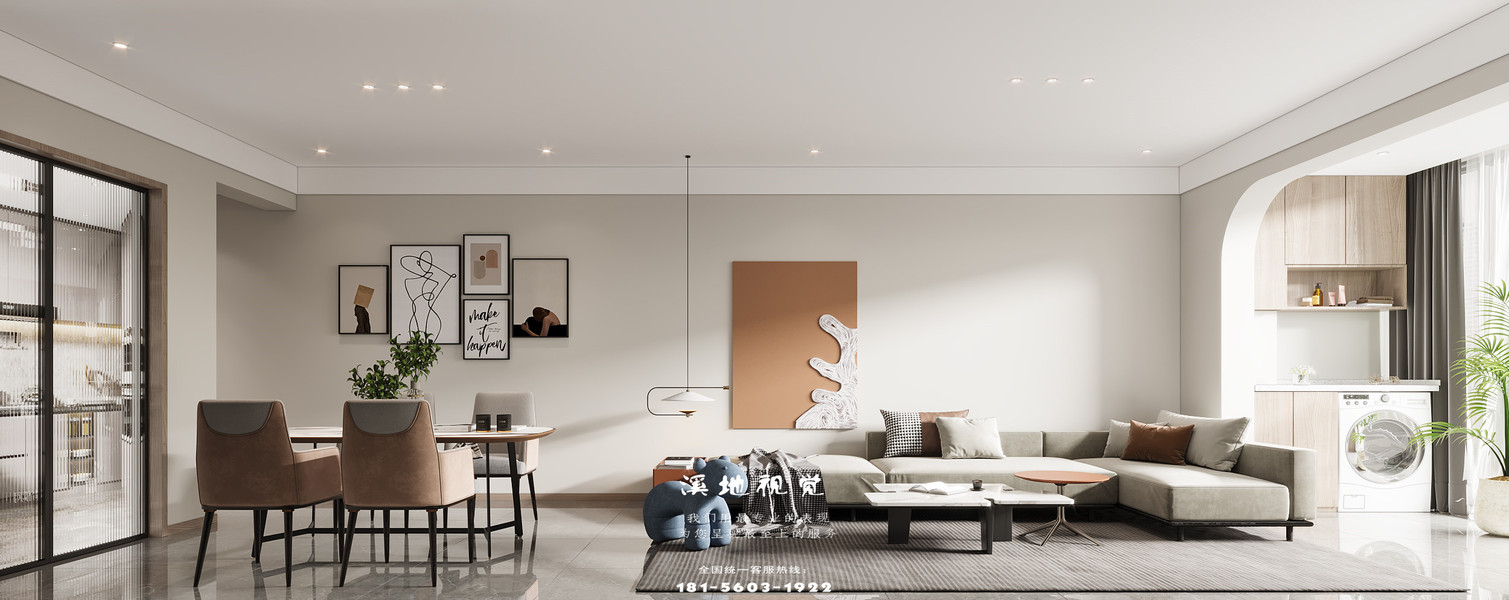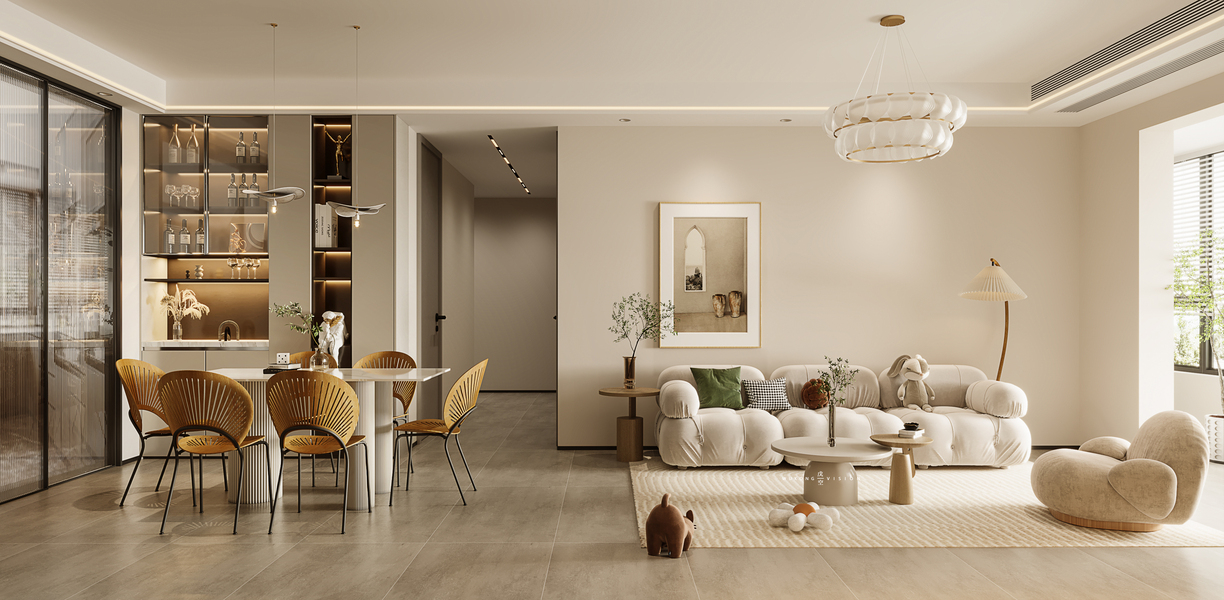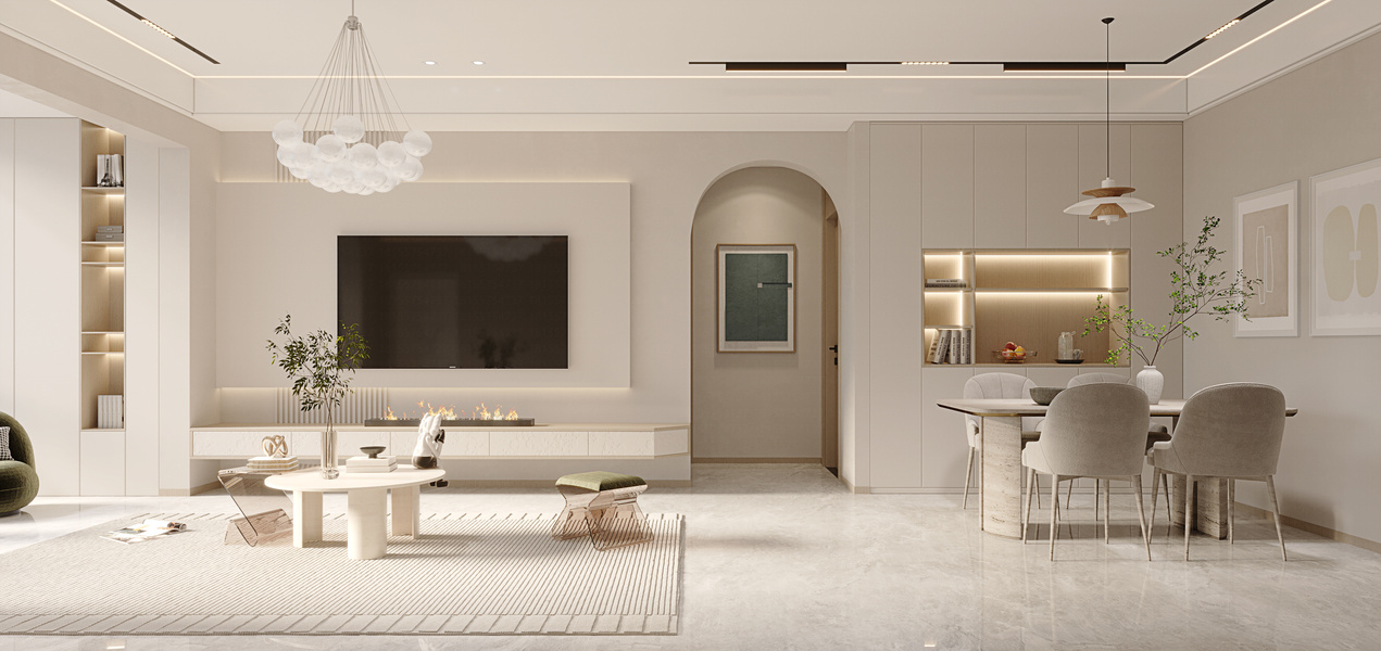 戊空效果图 一 现代极简风格 ,奶油色