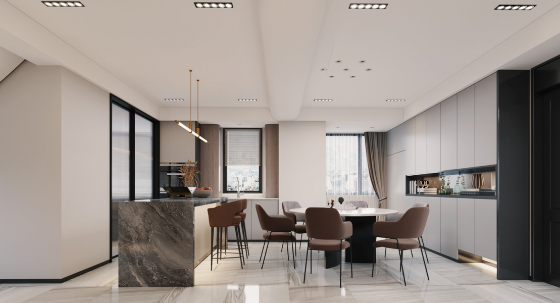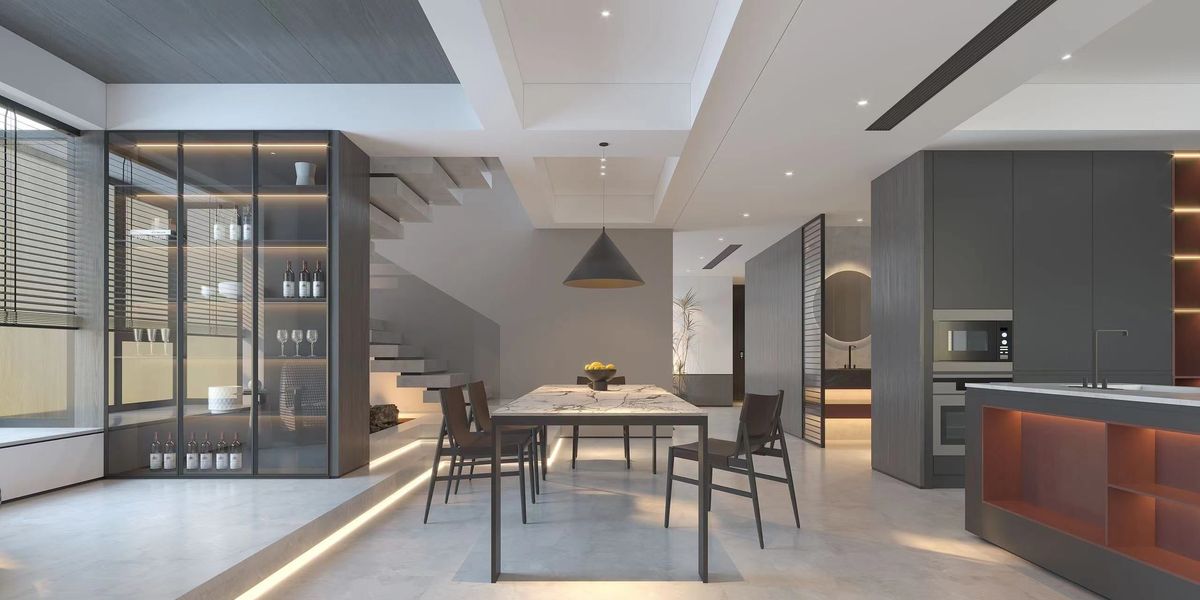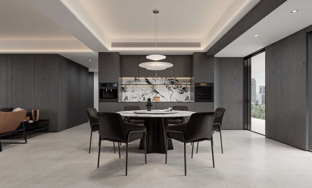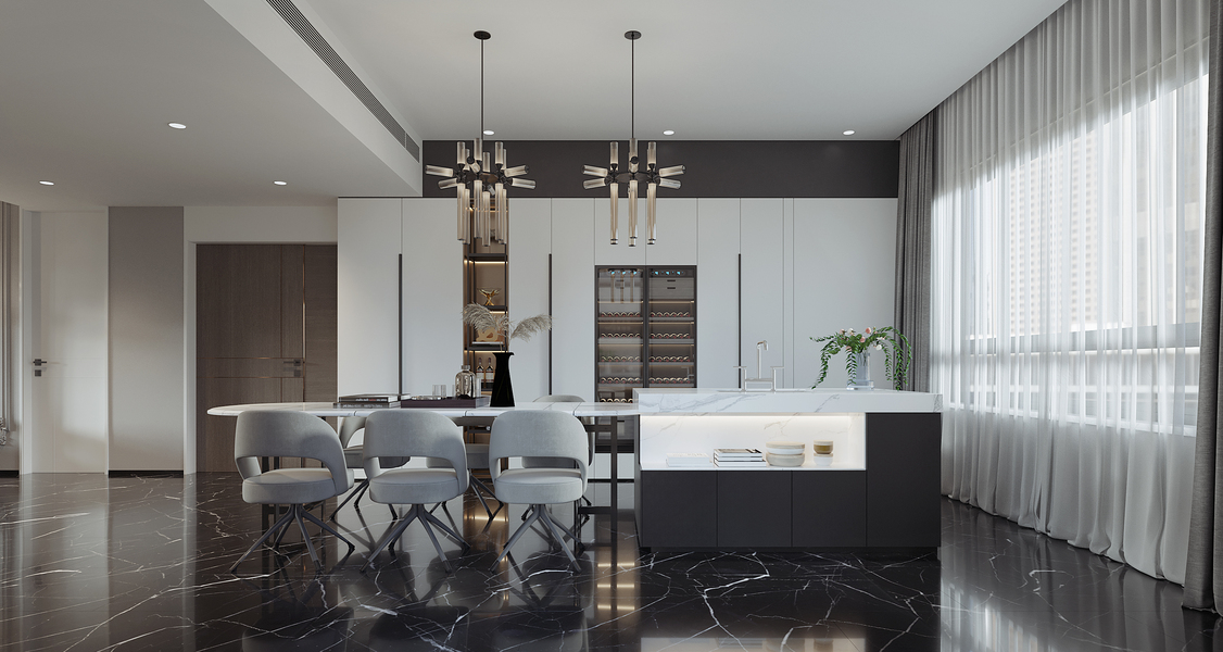 御璟湖山装修,现代黑白灰叠拼设计,天古装饰设计师