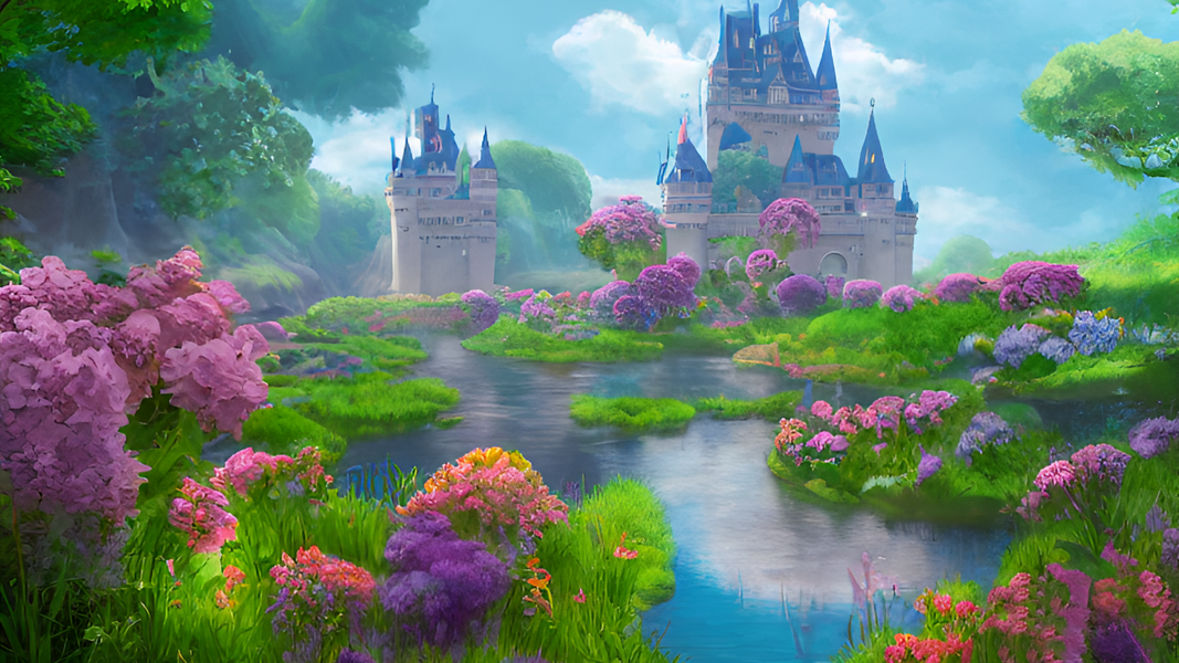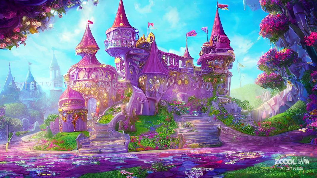 #AI创作实验室#糖果王国、美丽的城堡、薄荷人行道