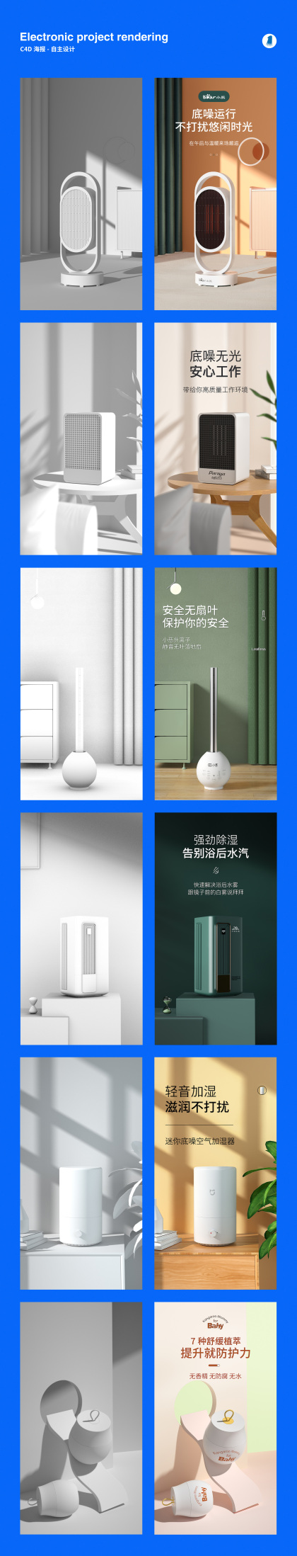 加湿器/冲电宝建模渲染详情页全案设计