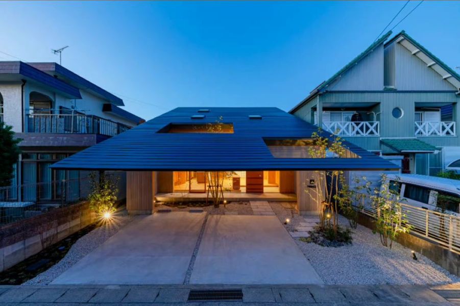 日式非常规加长坡顶庭院住宅