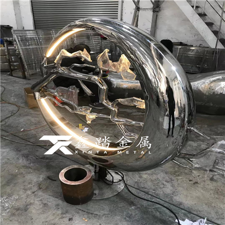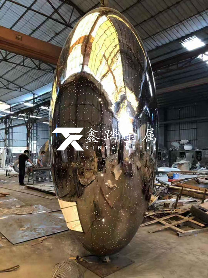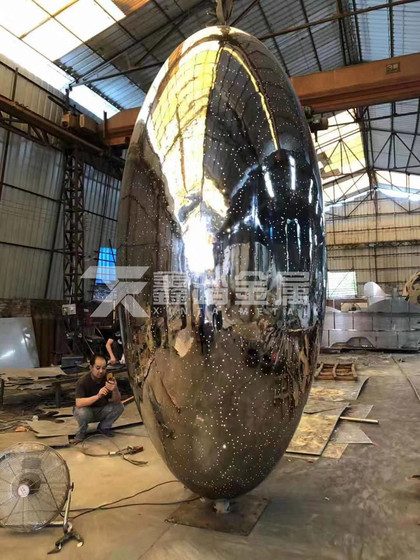 纯手工锻造曲面不锈钢椭圆球雕塑可装灯带发光效果
