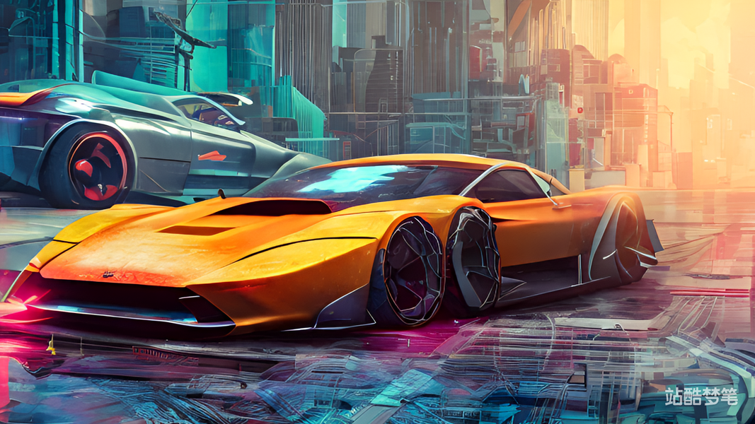 #站酷梦笔#赛博朋克,跑车,超写实,写实,高度详细的