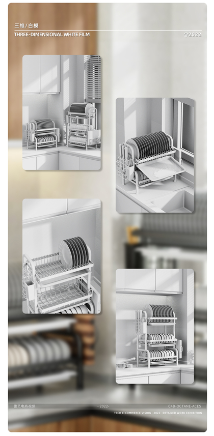 碗碟架丨厨卫丨详情丨C4D产品渲染 ✖ 德艺电商视觉