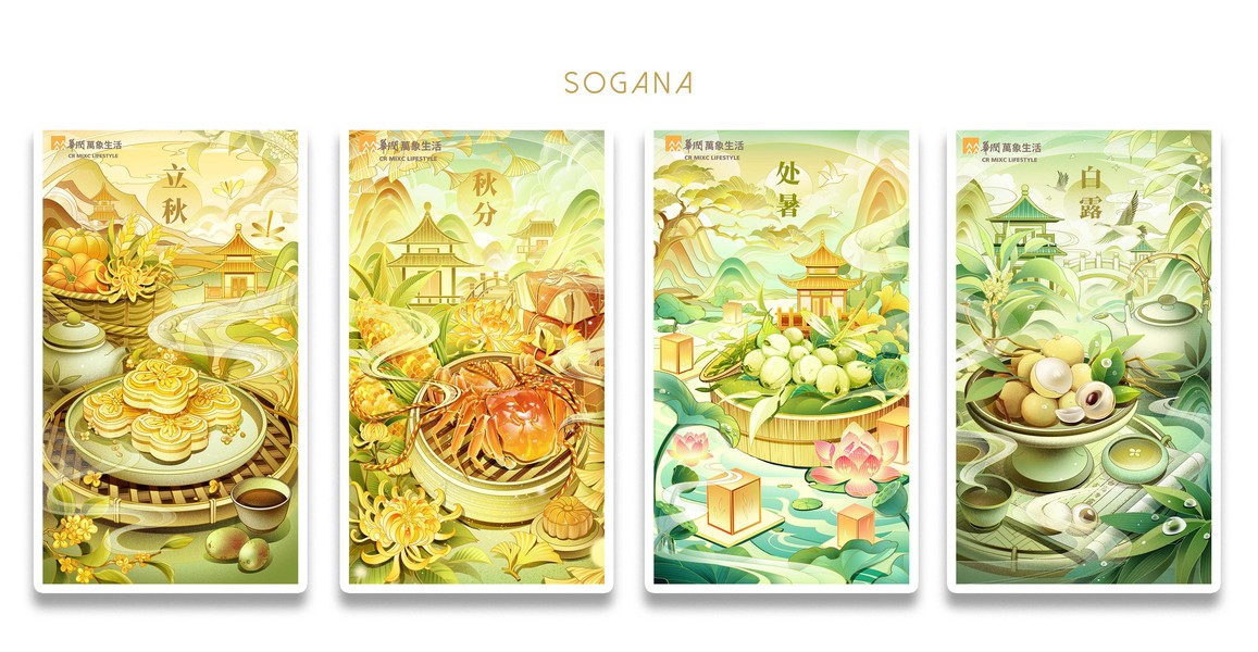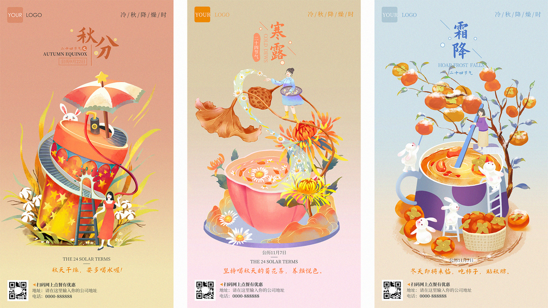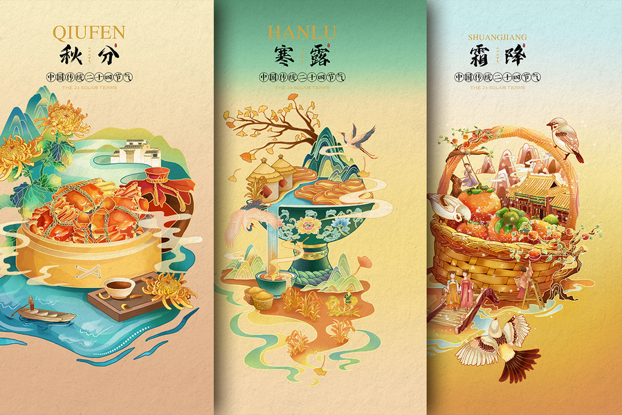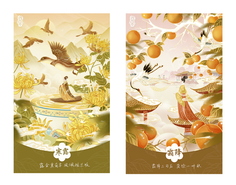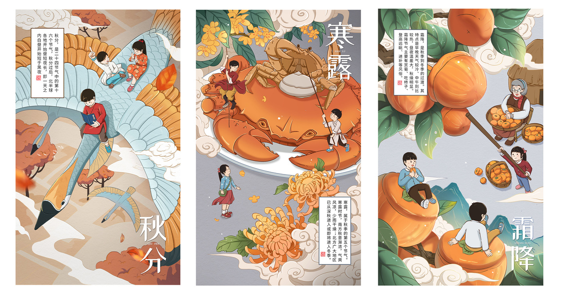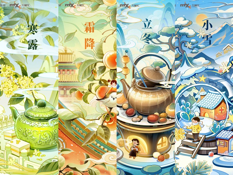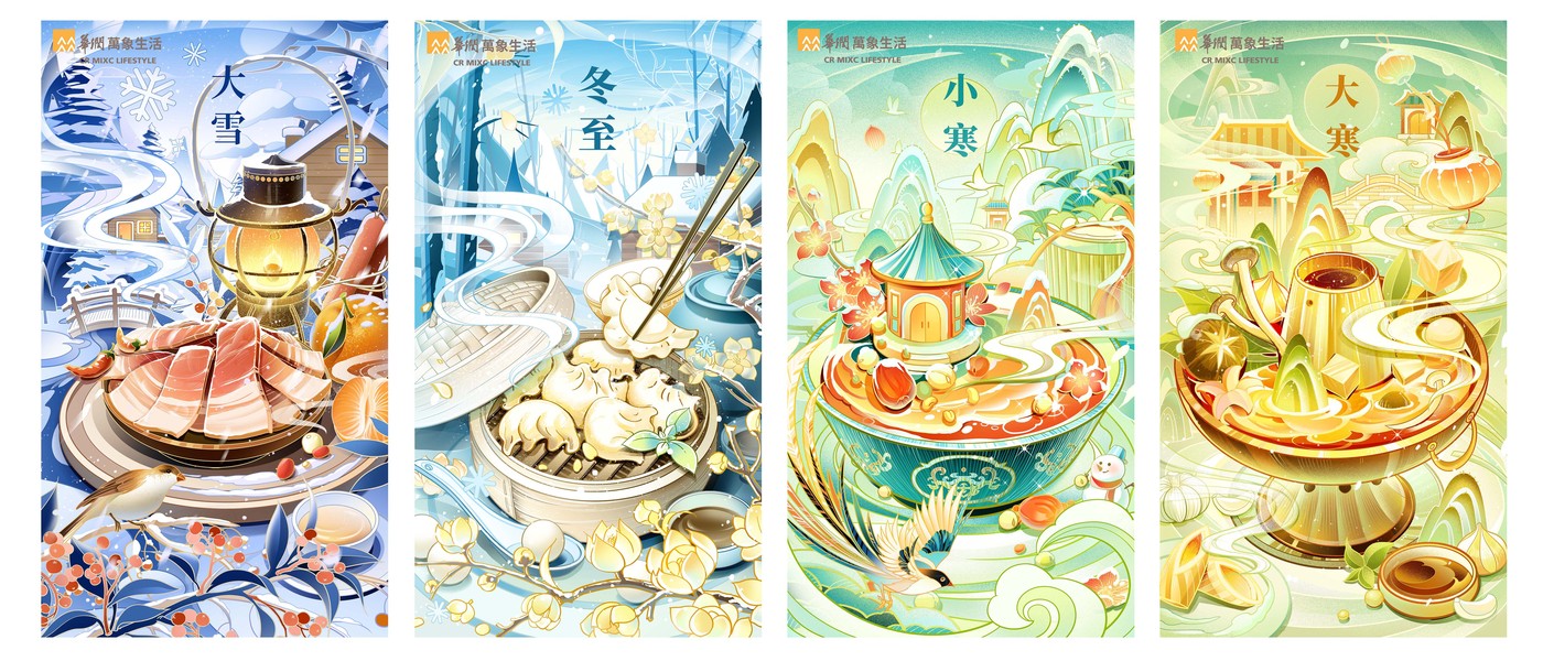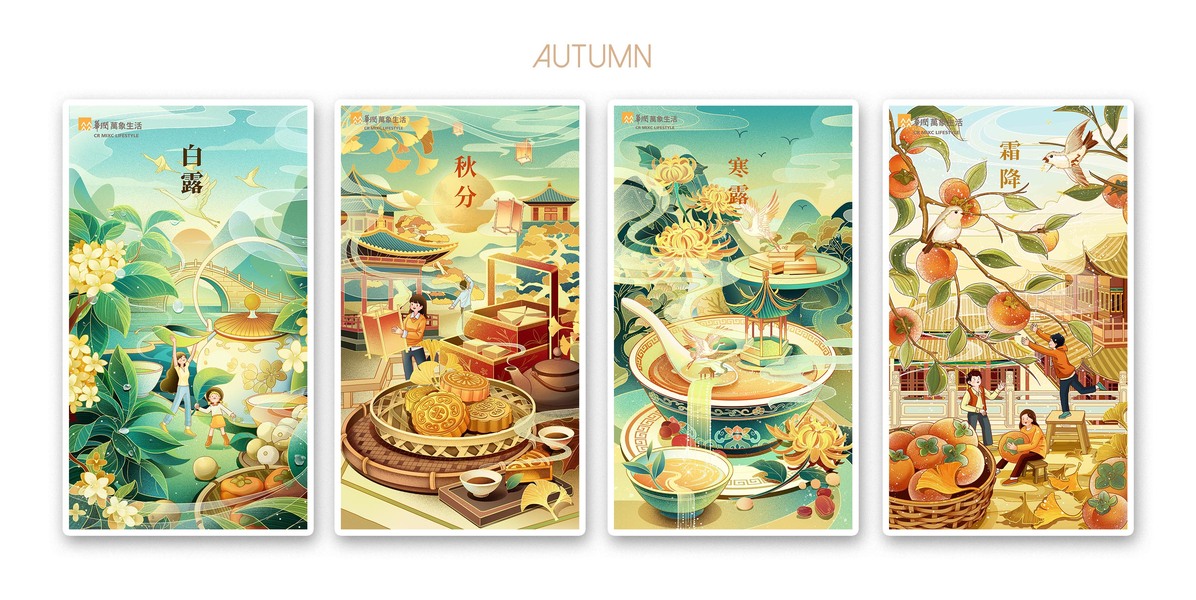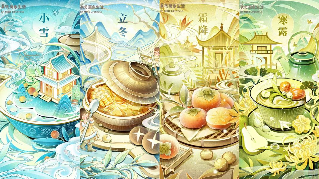 华润2022年24节气插画:寒露 霜降 立冬 小雪
