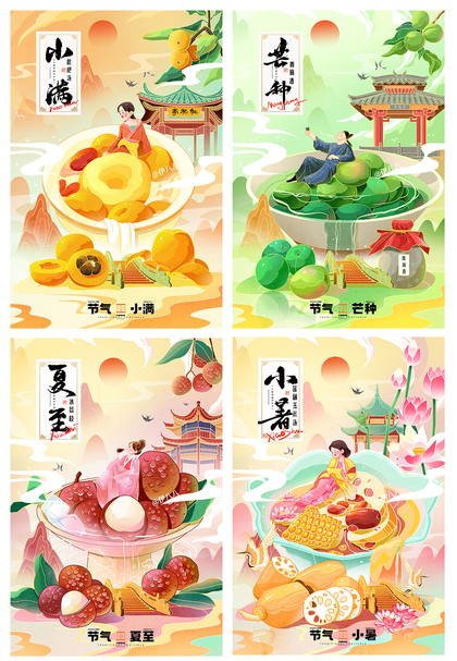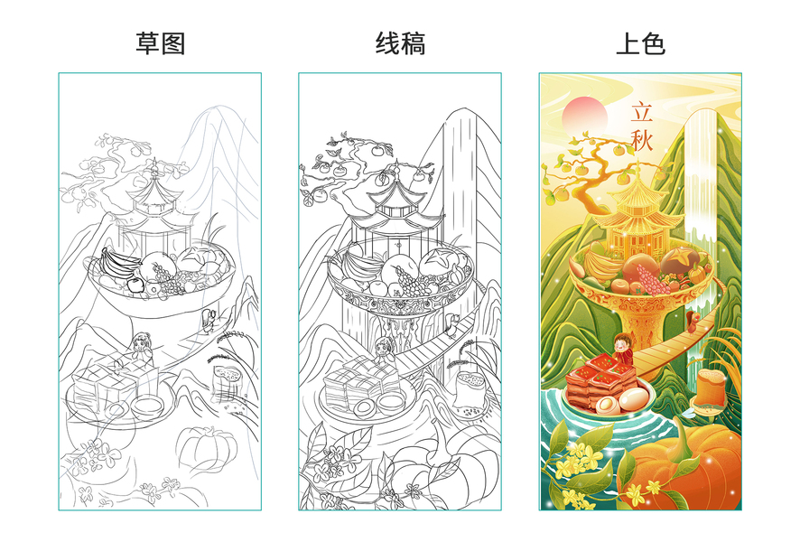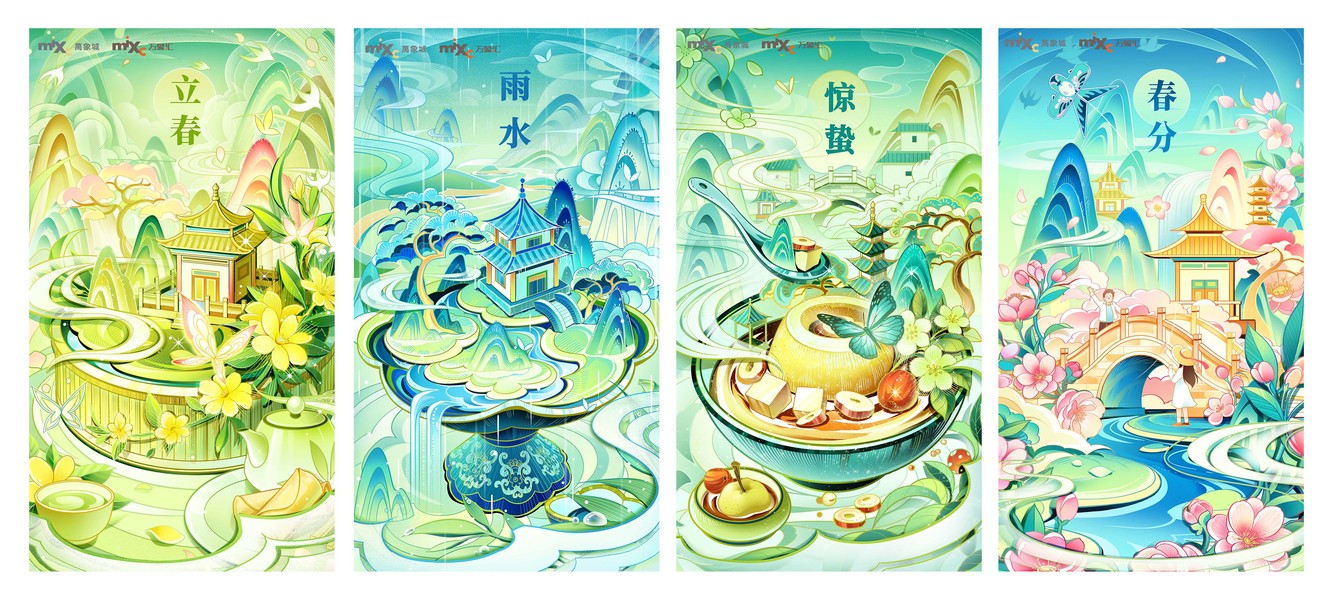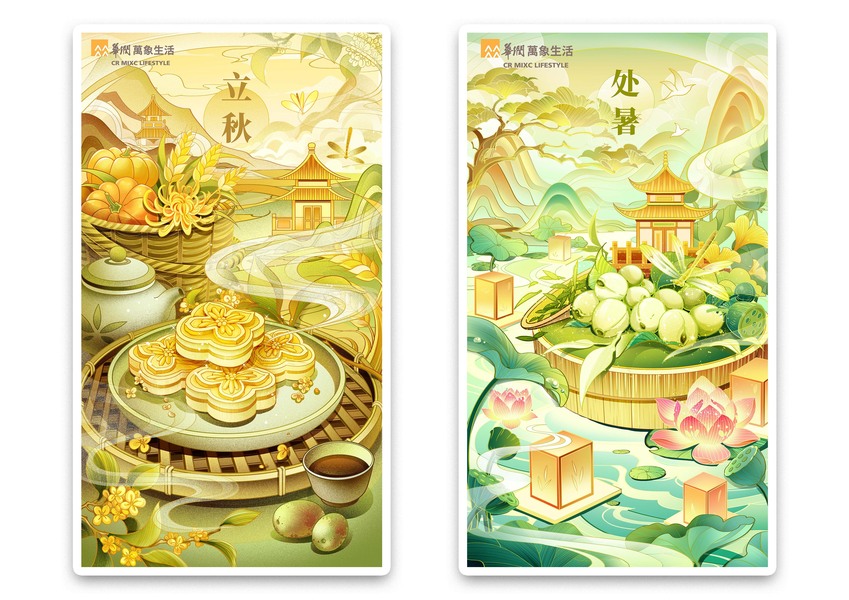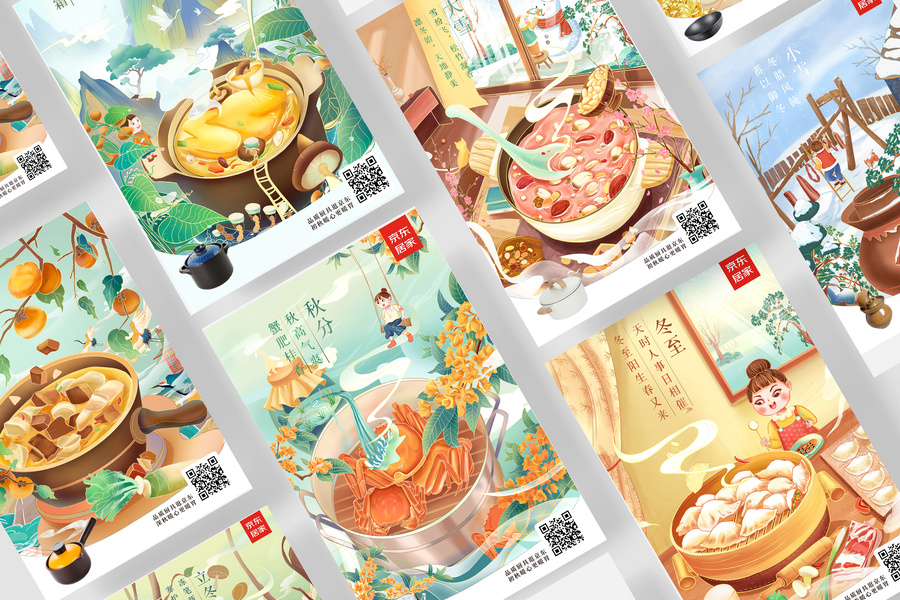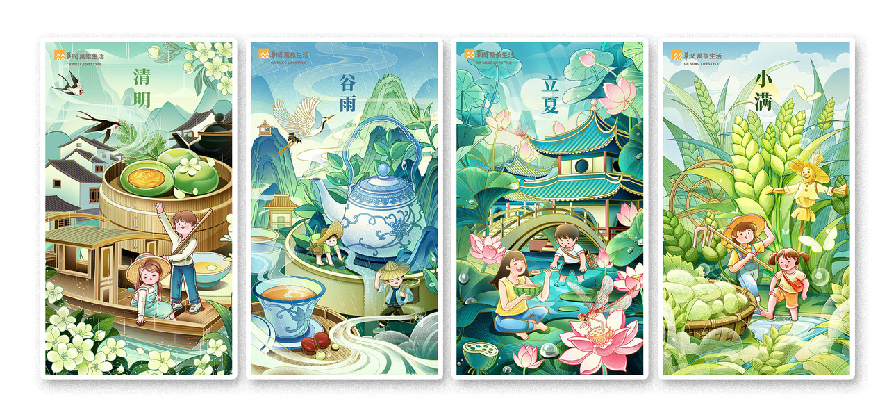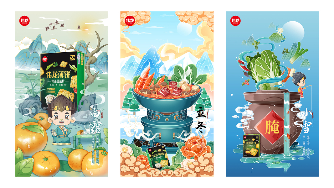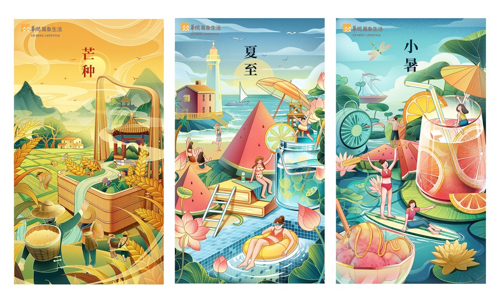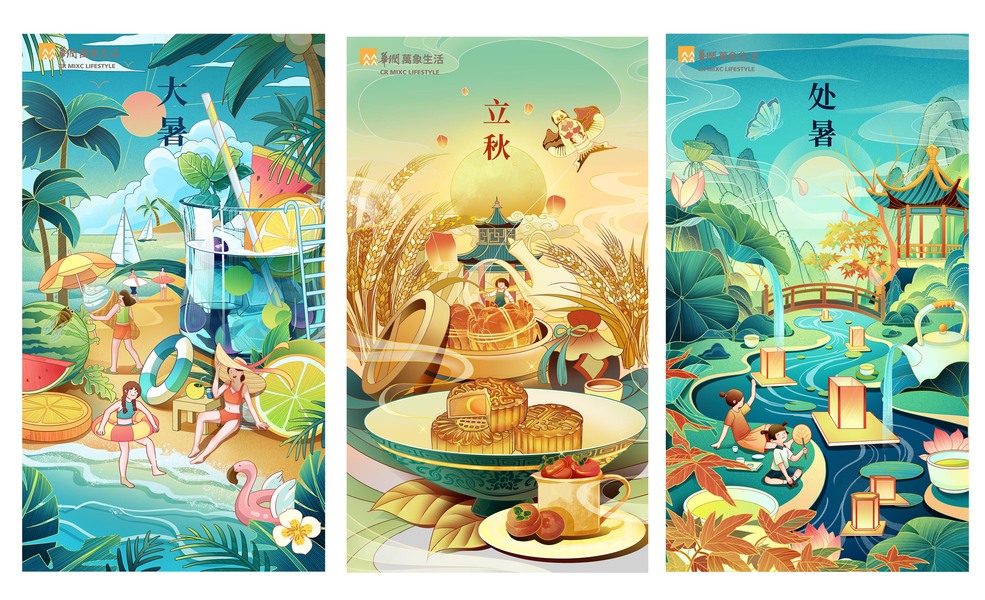 华润2022年24节气插画:寒露 霜降 立冬 小雪