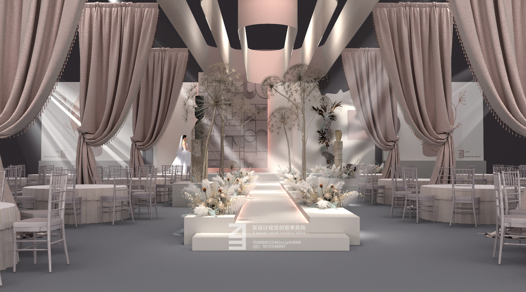 YHwedding婚礼设计:粉紫色大场景婚礼3D效果图