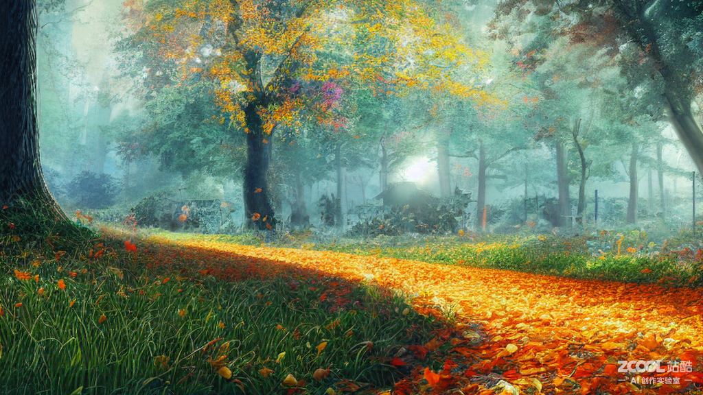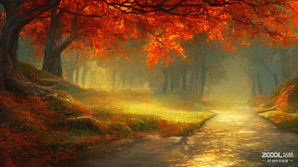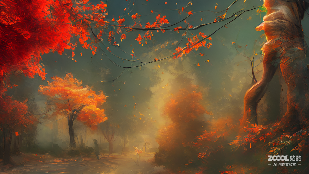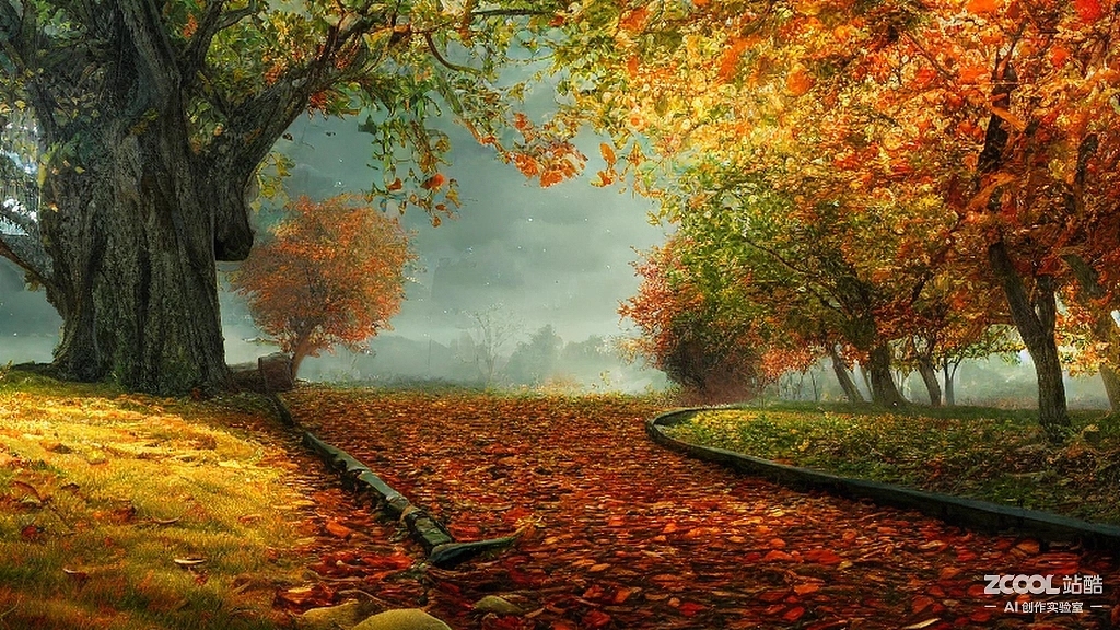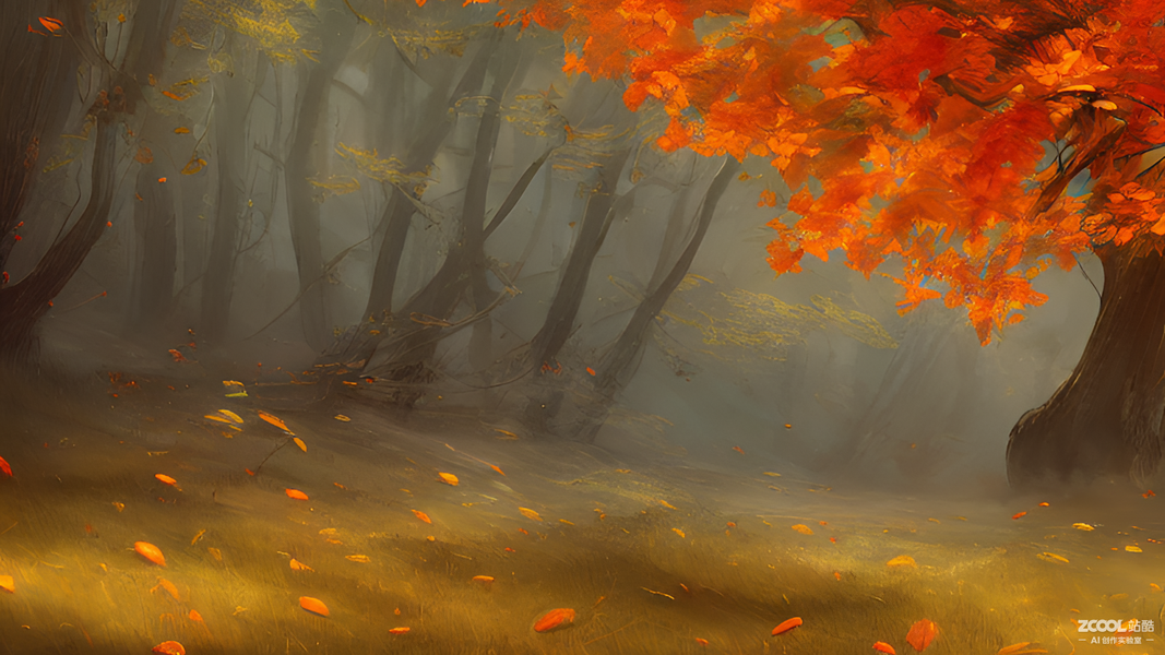 #AI创作实验室#秋风扫落叶,插画,动态光影,ArtStati