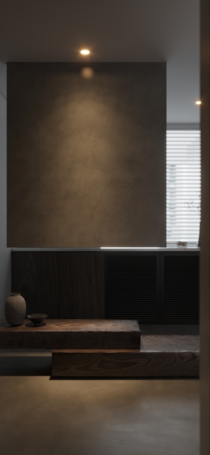 家装案例赏析——暗调与原木组成的深邃侘寂风