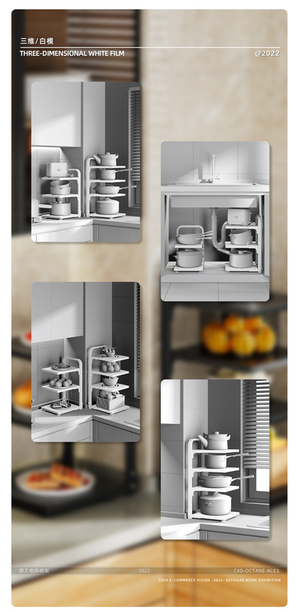 锅具架丨厨具丨详情丨C4D产品渲染 ✖ 德艺电商视觉