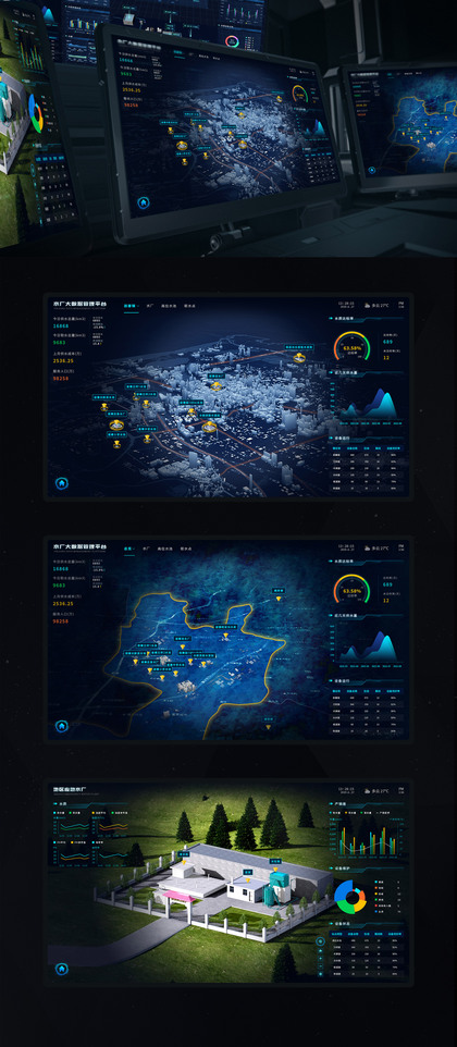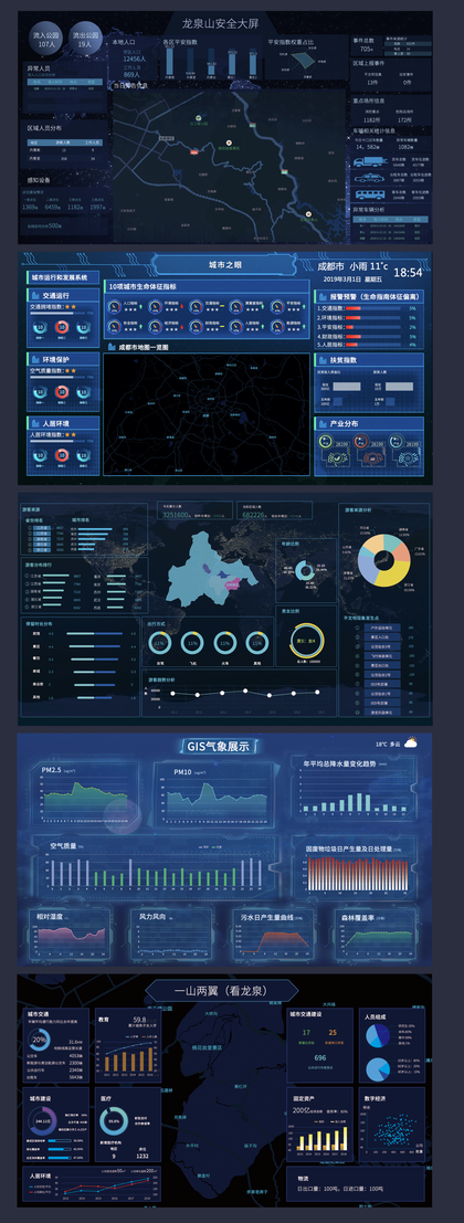 数据可视化监控大屏案例 涉及通信、疫情、监测、旅游