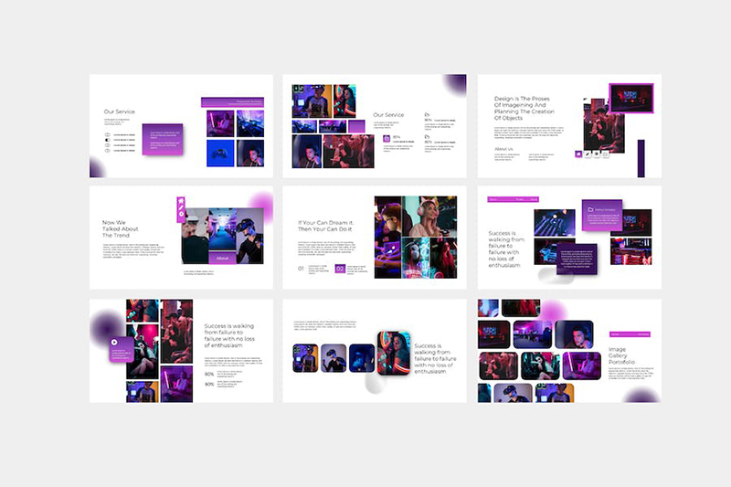 30页渐变色科技风虚拟世界VR项目介绍国外PPT模板