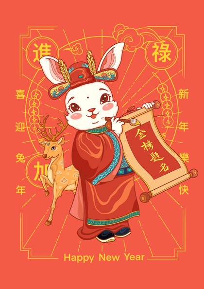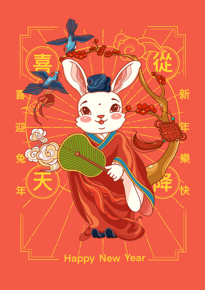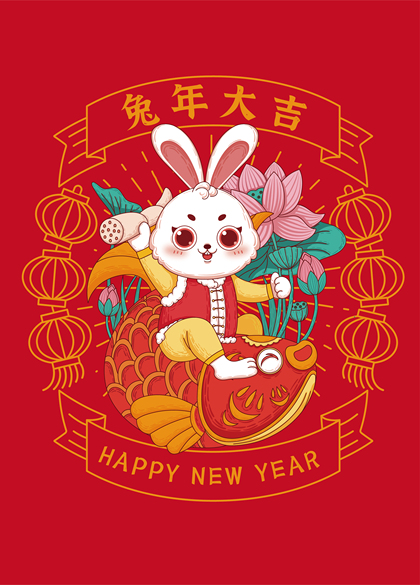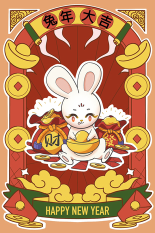 2023兔年插画--《兔年大吉兔年新春主题插画系列一》