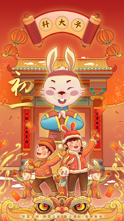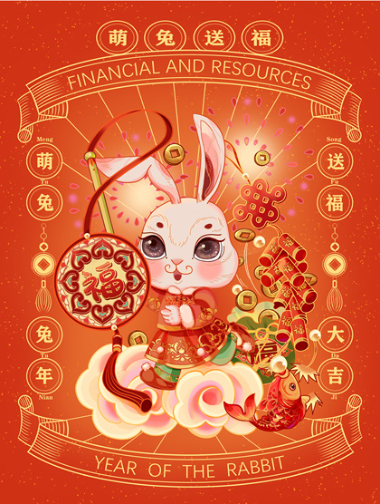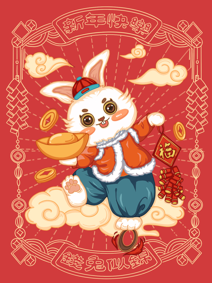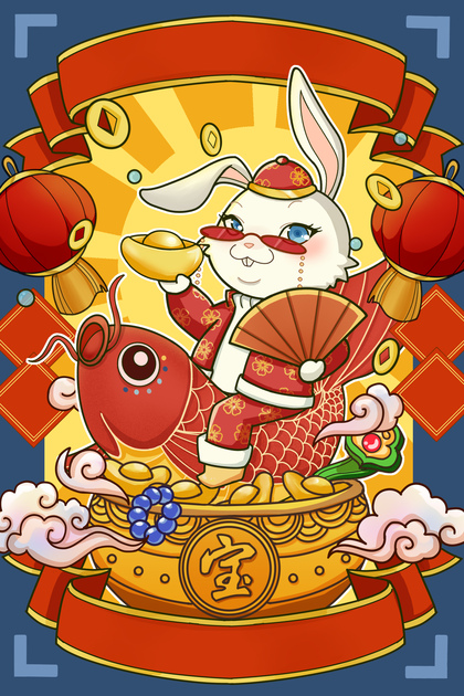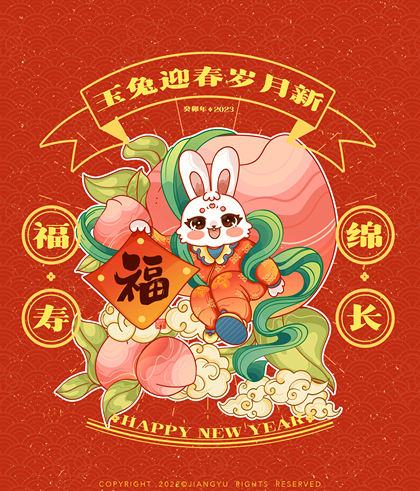 《福兔迎春辞旧岁》兔年生肖IP主题国风系列插画