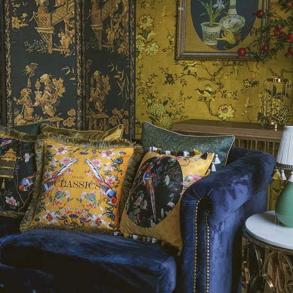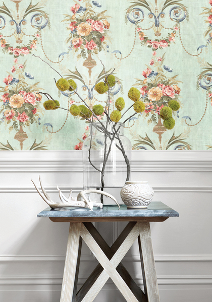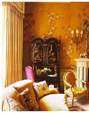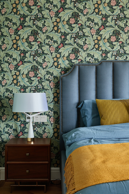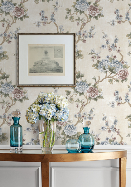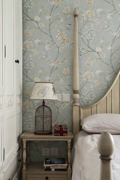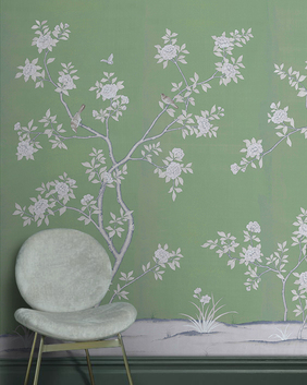 真丝手绘墙纸工笔花鸟画壁纸图片