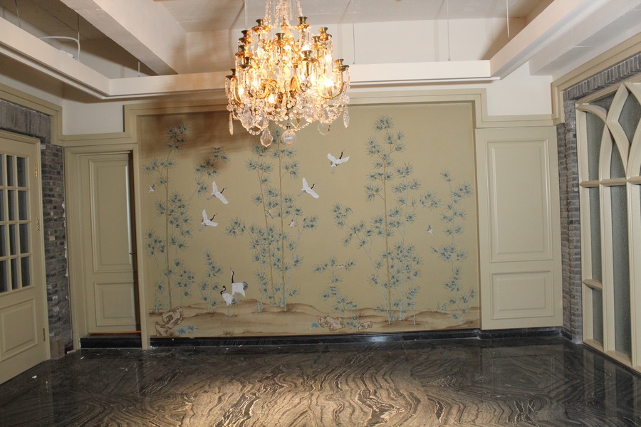 真丝和金银箔手绘墙纸效果图大图