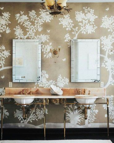 真丝手绘墙纸工笔花鸟画壁纸图片