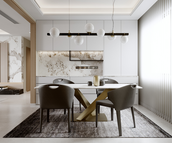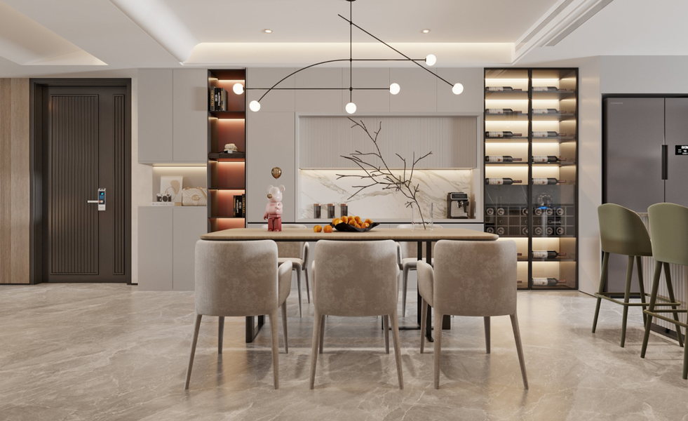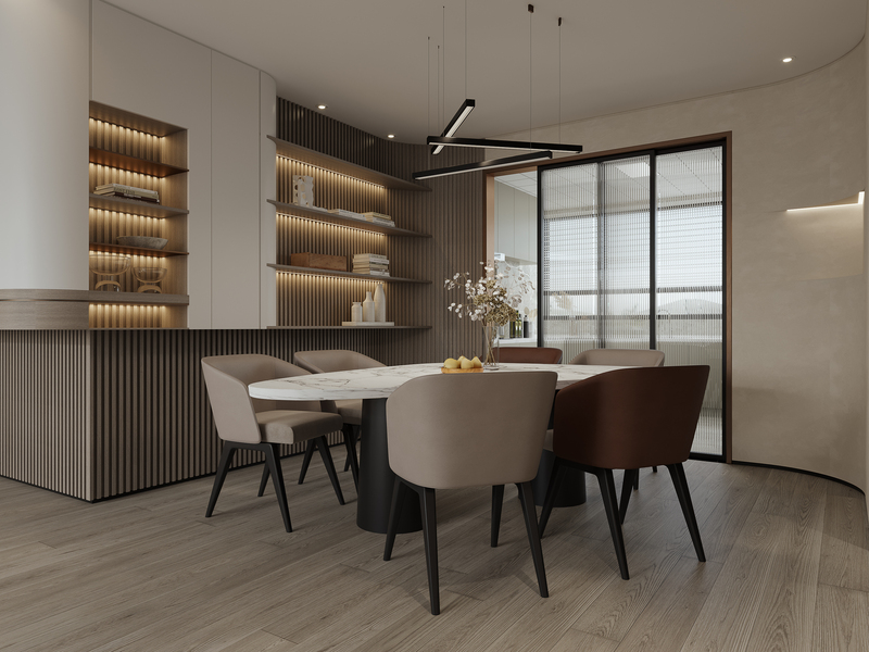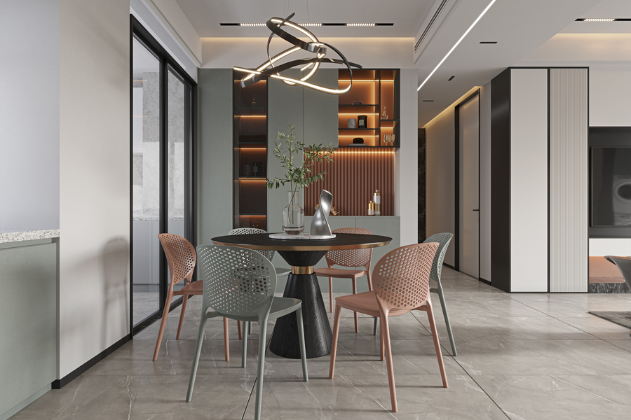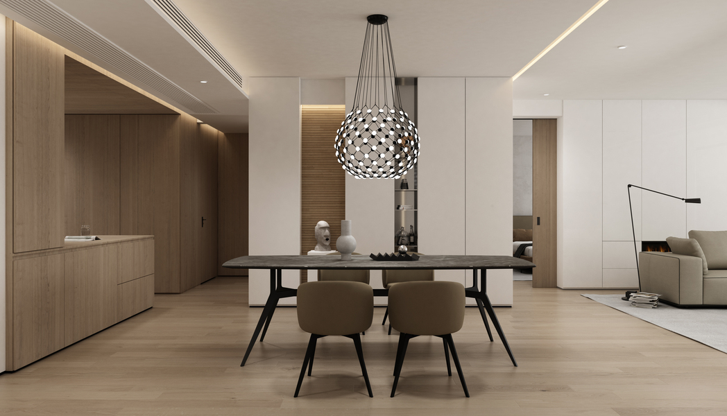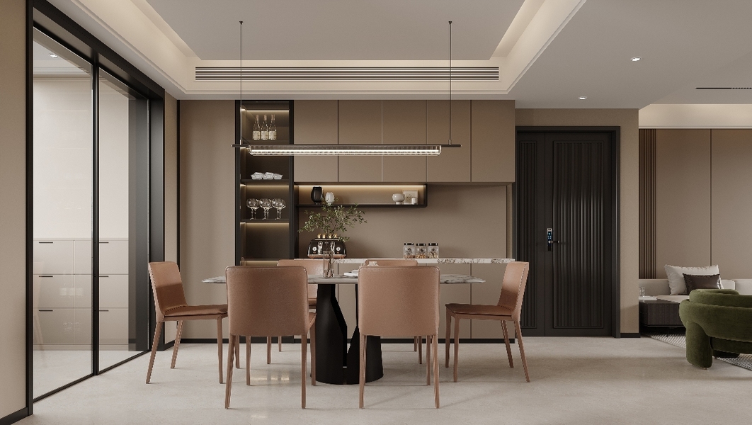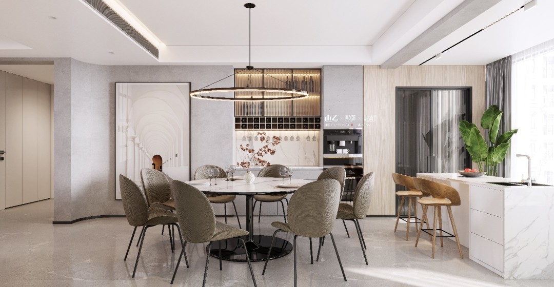 意式轻奢风客餐厅效果图表现
