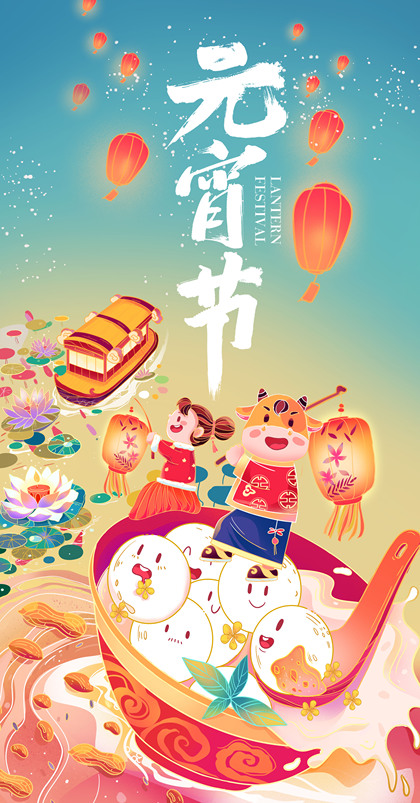 元宵节插画海报