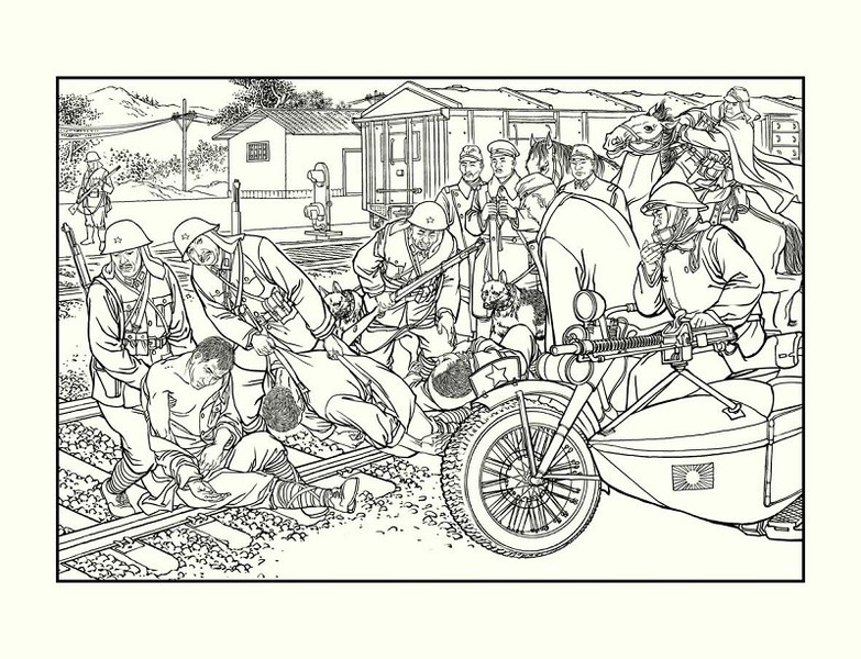 飞身躲子弹--徒手撕鬼子~连环画~插画~线描白描