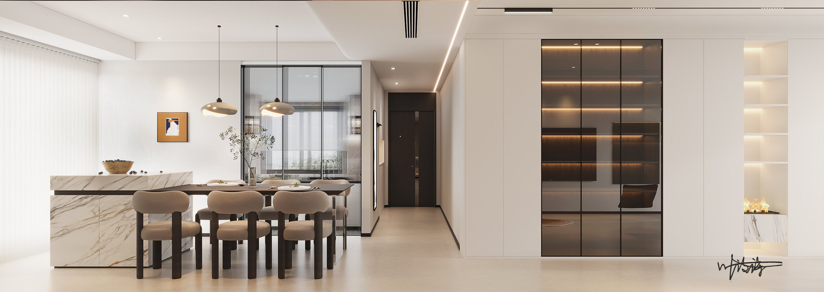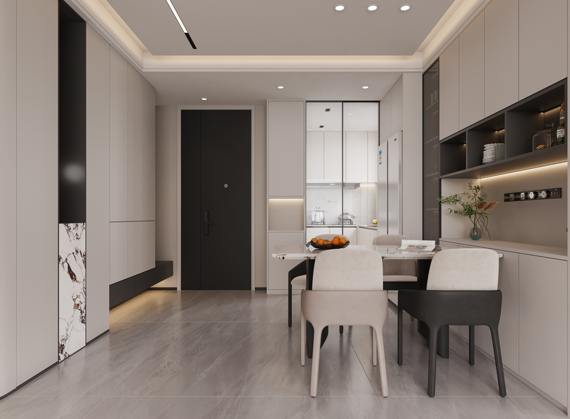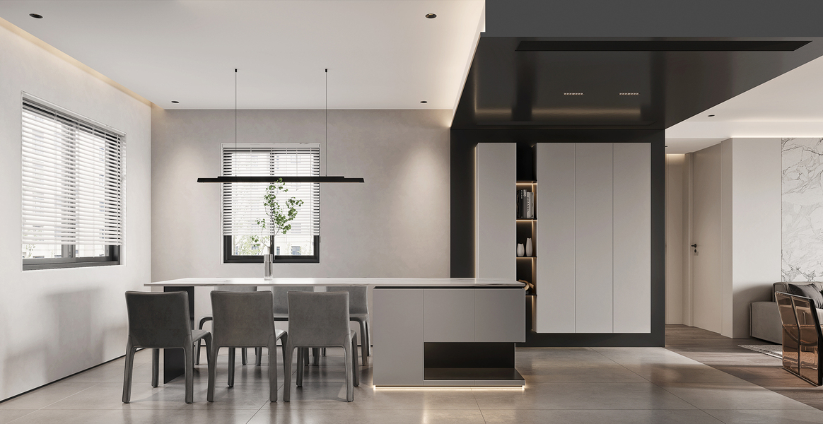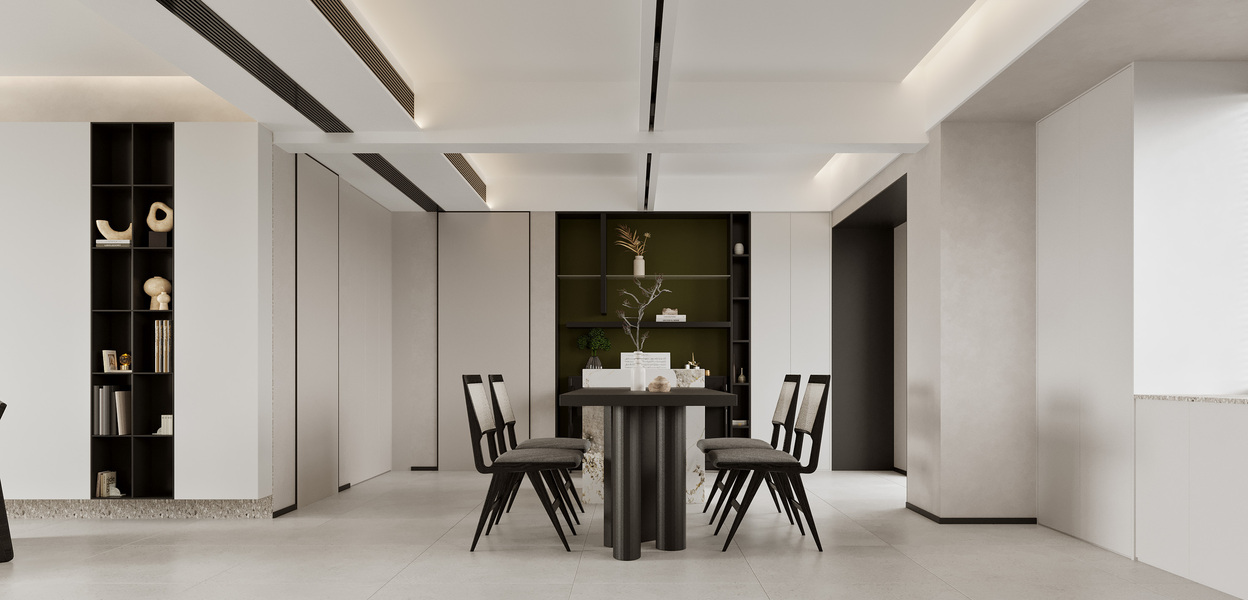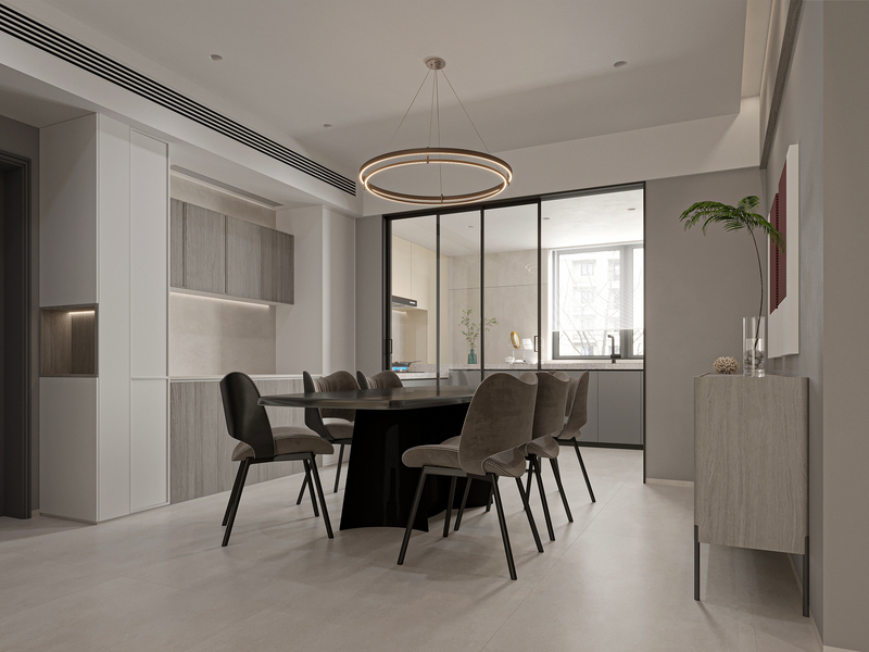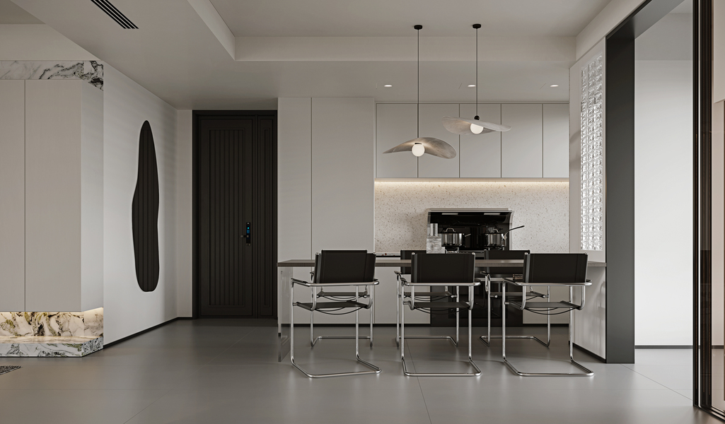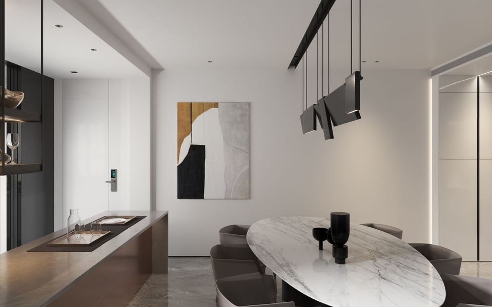 现代黑白灰客餐厅效果图表现