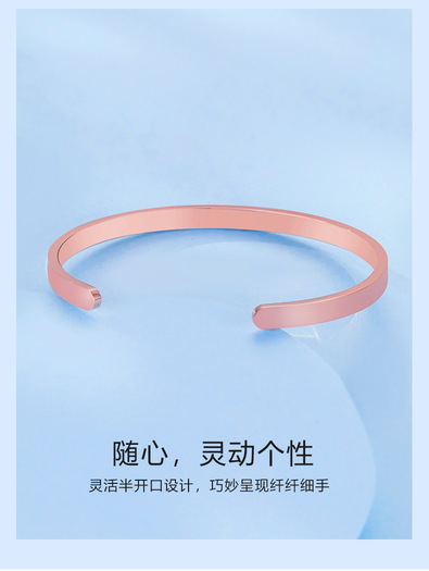 工美博物馆新款钻石开口手镯天然真钻玫瑰金手环情侣
