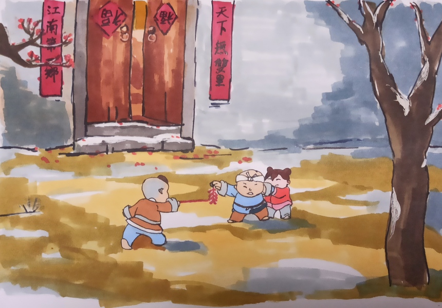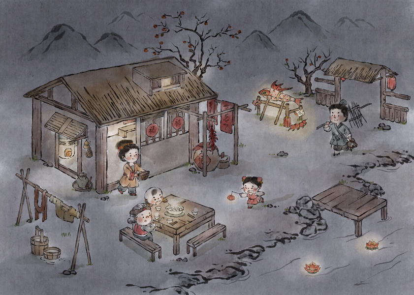 水墨风年俗插画