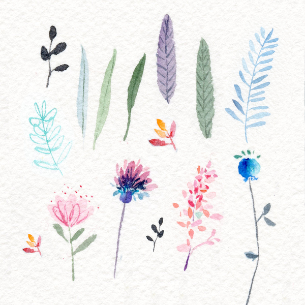 【小熊猫】水彩手绘花卉植物水彩插画教程小清新卡通插画的练成手帐手绘水彩步骤