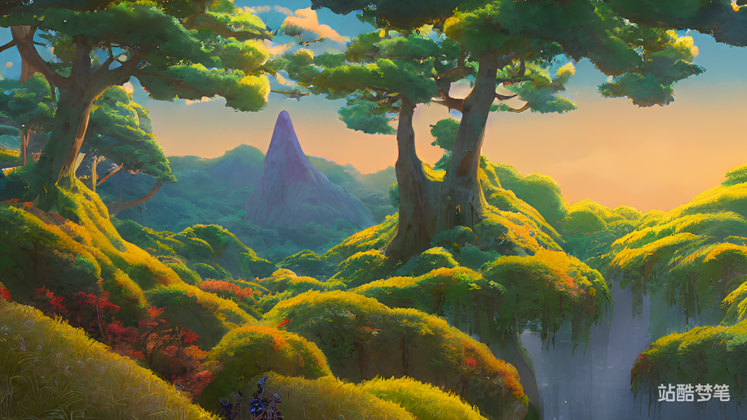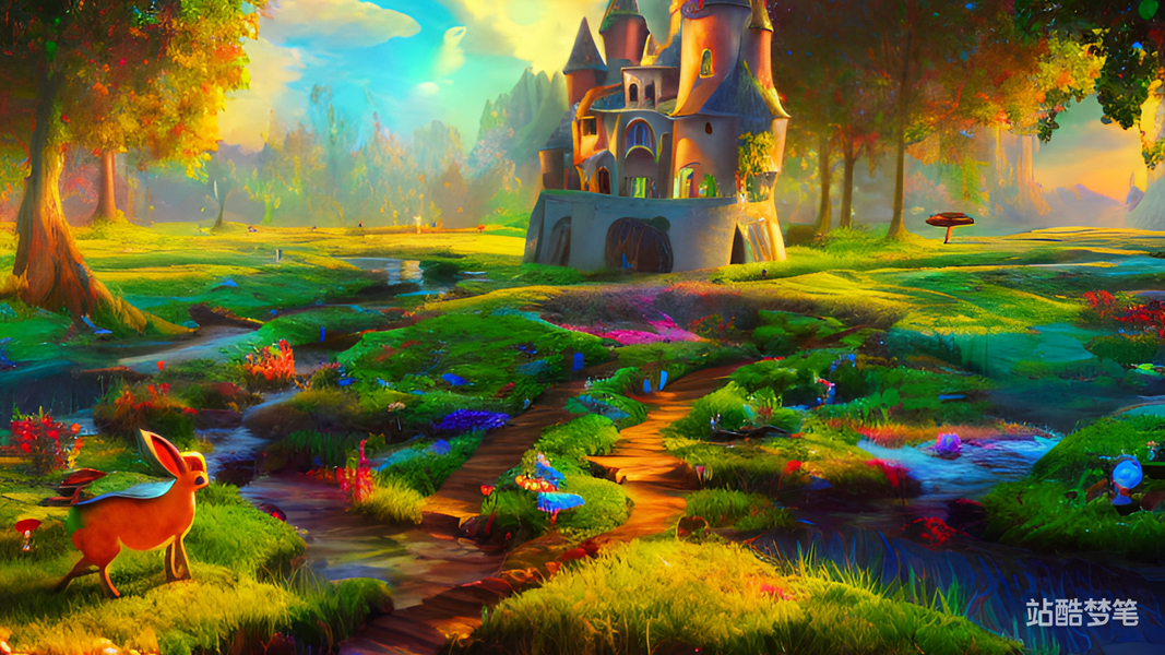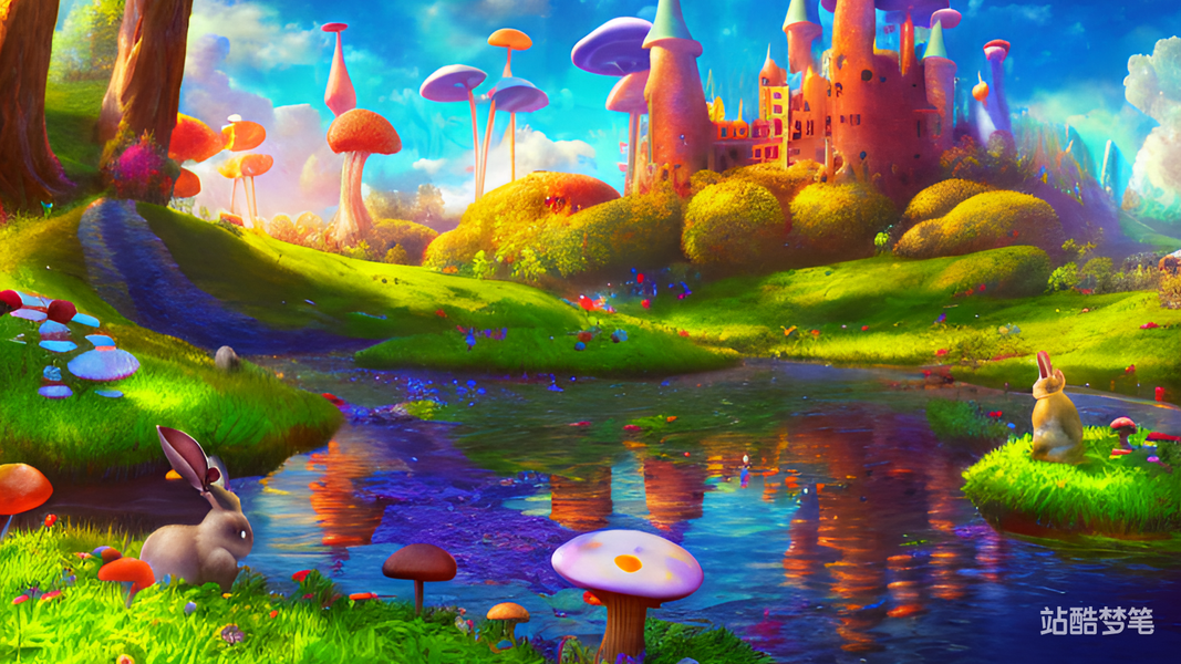 #站酷梦笔#阳光 童话城堡 七彩河 有兔子 有蘑菇
